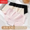 Ropa interior de una pieza sin costuras de seda de hielo de alta elasticidad para mujer, verano, ligera, color nude sólido, cintura baja, bóxer medio cadera para mujer
