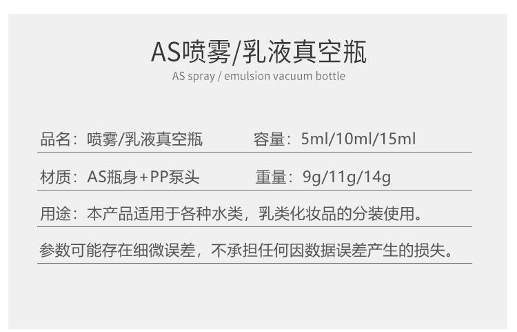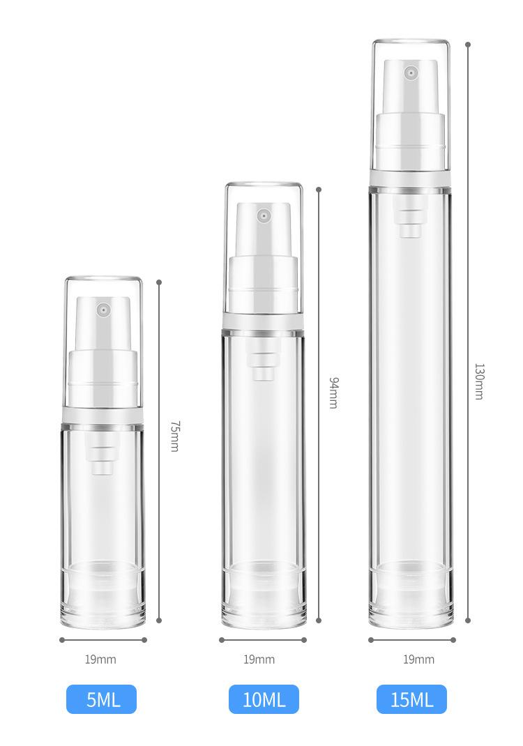 Botella de vacío de 5 ml, 10 ml y 15 ml, para loción, esencia, pulverizador de niebla fina, envase cosmético, botella de viaje.