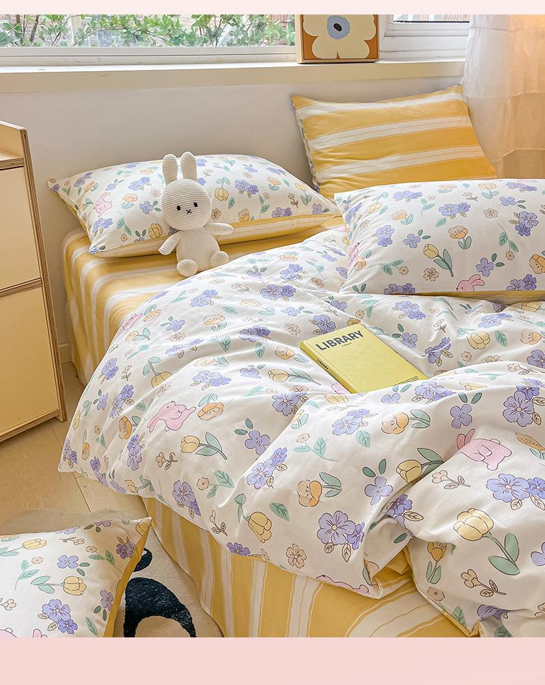 Juego de cuatro piezas de algodón ins 100% Algodón Estilo Fresco Ropa de Cama para Mujer Sábana Encimera Funda de Edredón Juego de Tres Piezas para Cama de Dormitorio