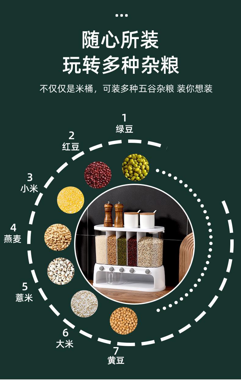 Cubeta de arroz con rejilla para el hogar cocina a prueba de insectos a prueba de humedad sellada 12L caja de almacenamiento de granos estilo japonés tarro de almacenamiento