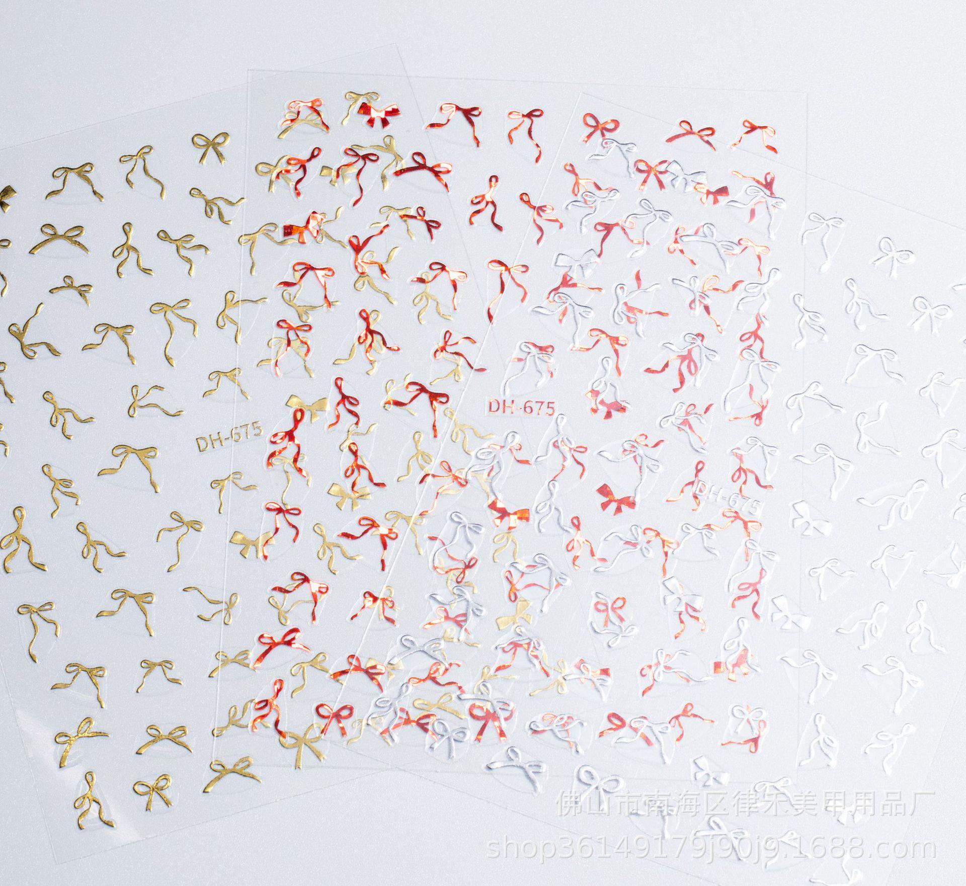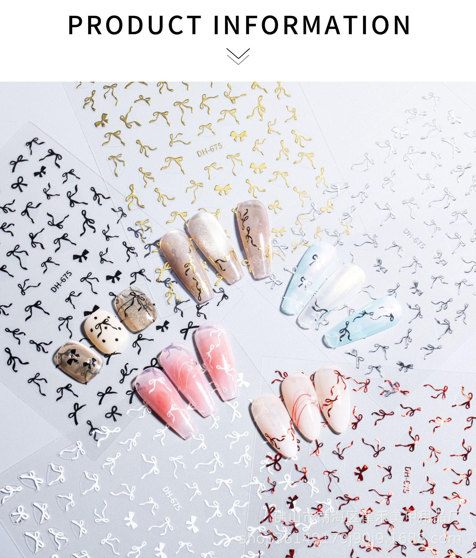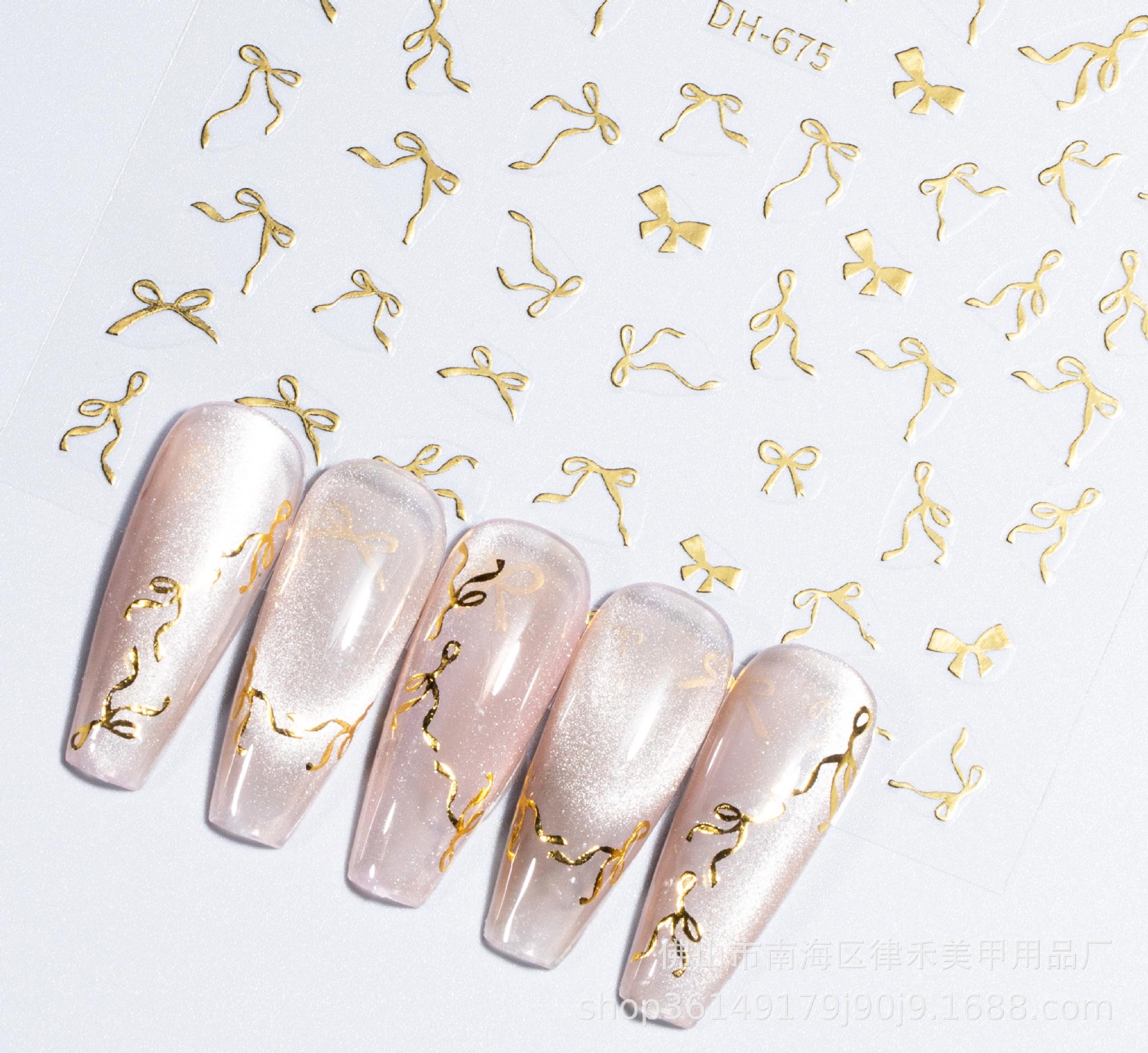 Nuevos stickers para uñas 5D color bronceado lazo tridimensional para uñas decoración de stickers para uñas populares en internet oro y plata