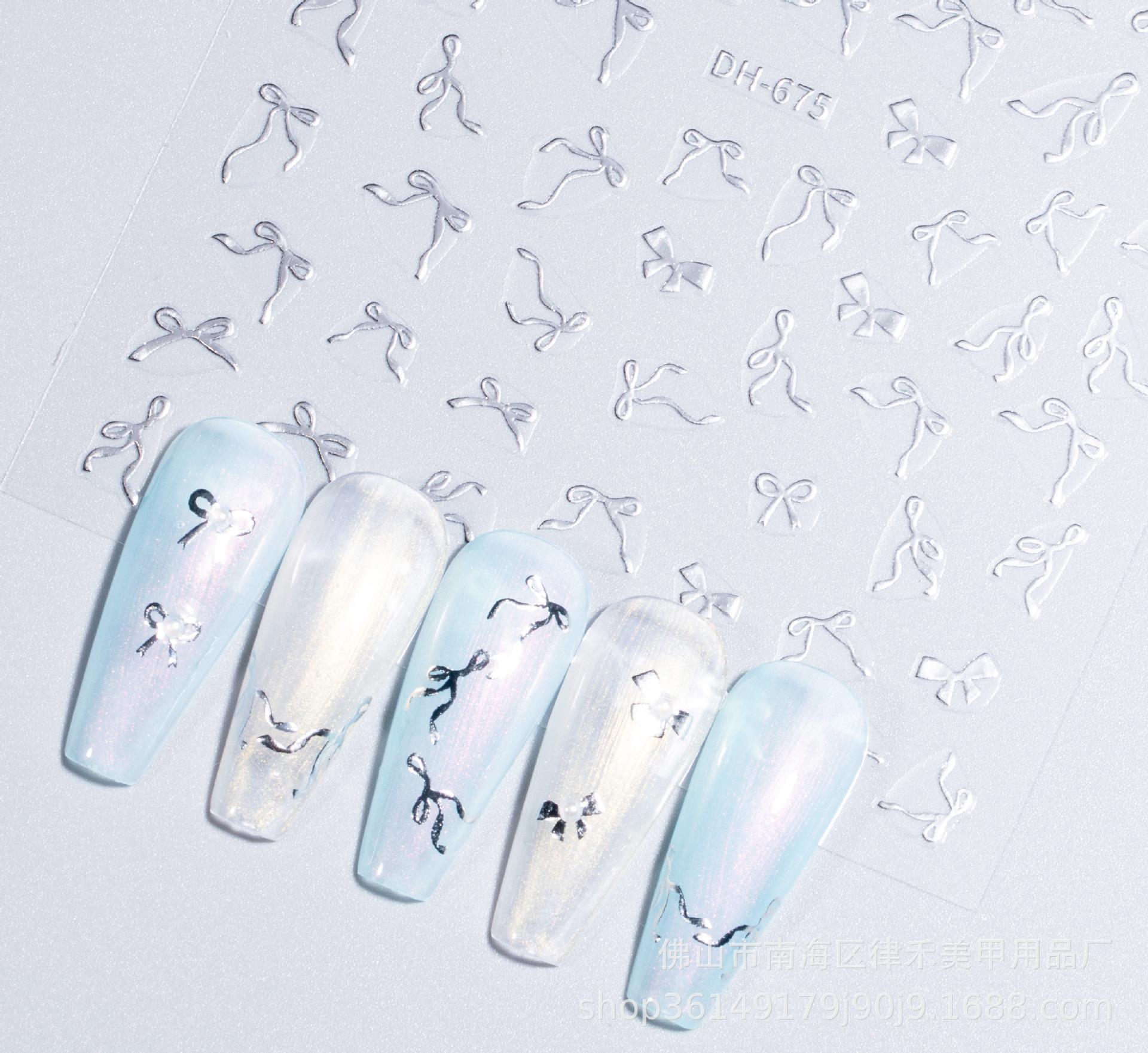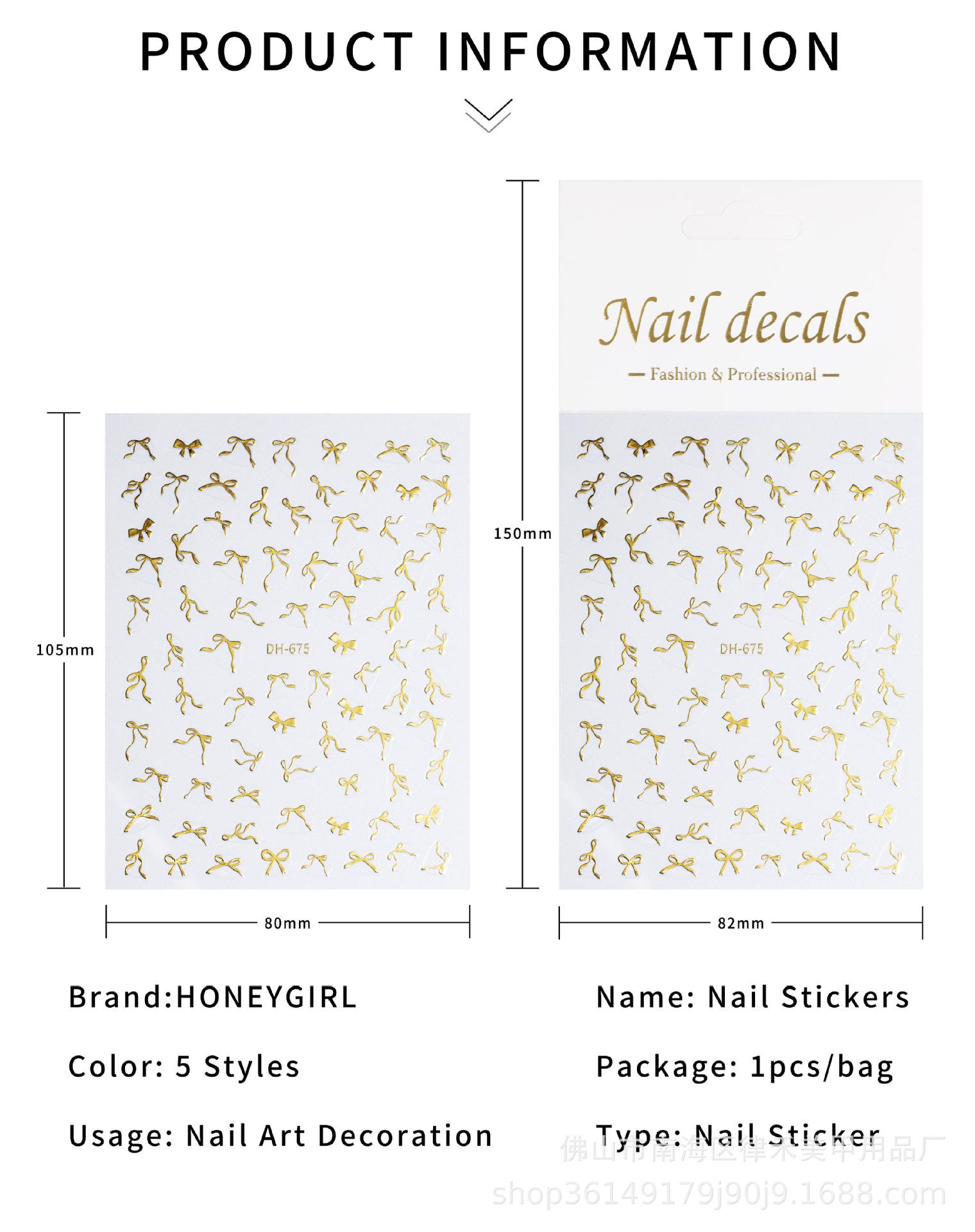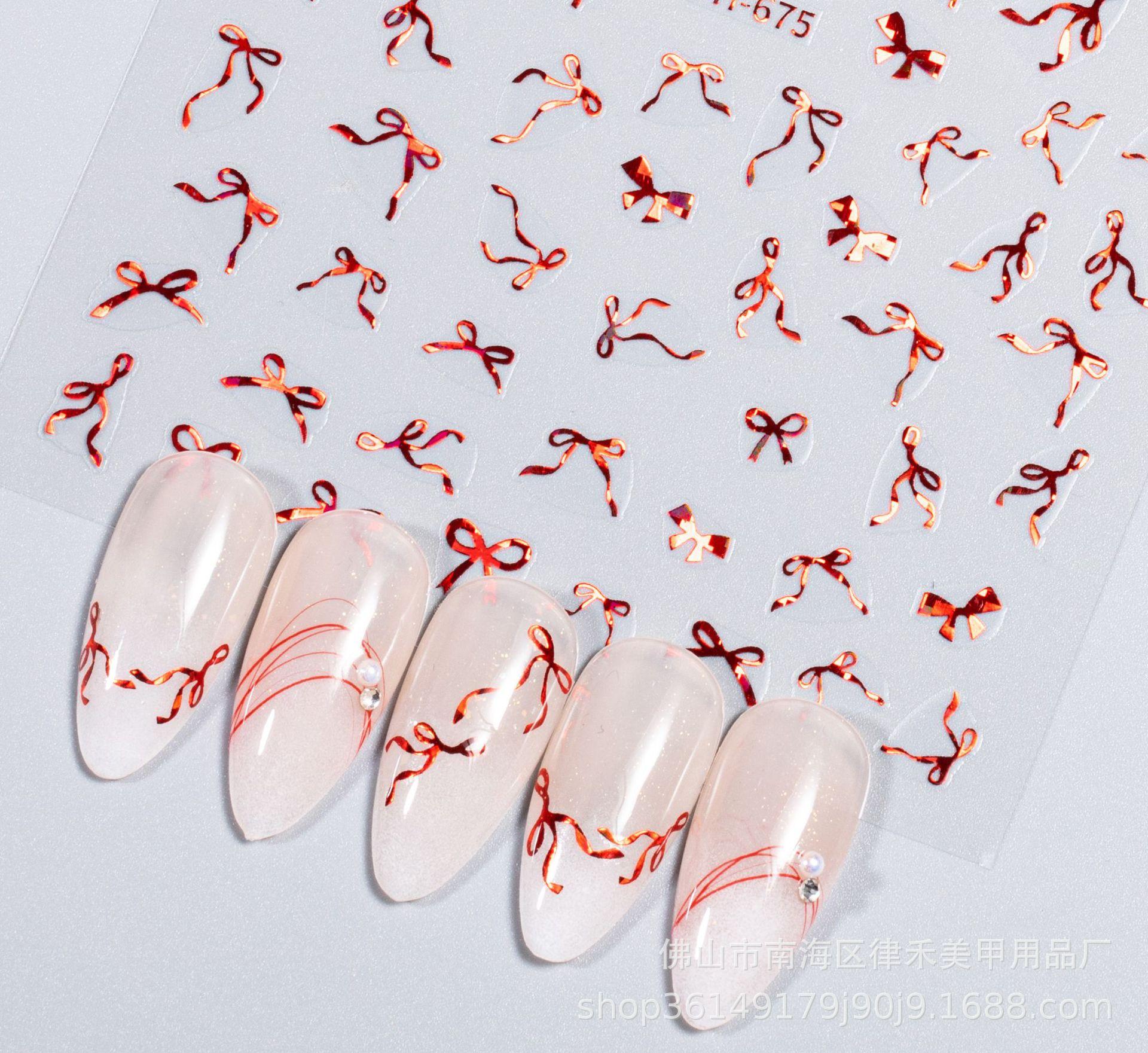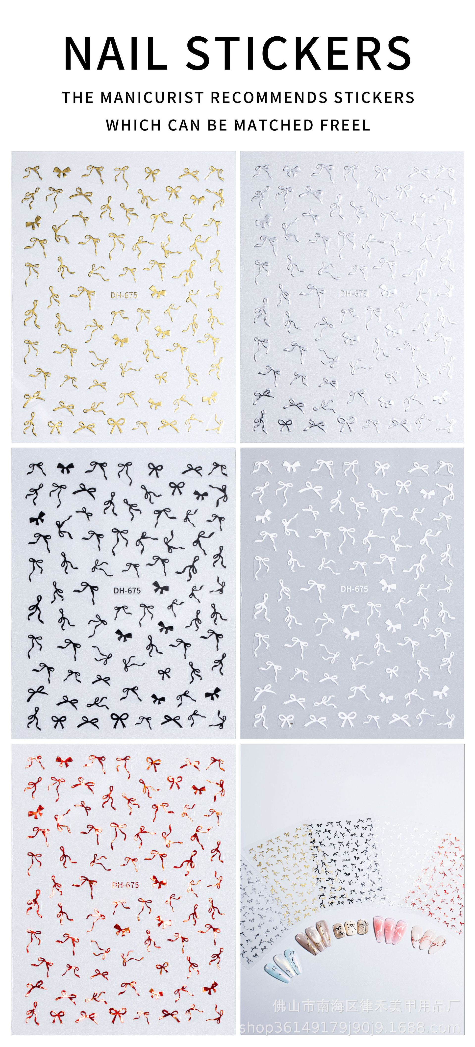 Nuevos stickers para uñas 5D color bronceado lazo tridimensional para uñas decoración de stickers para uñas populares en internet oro y plata