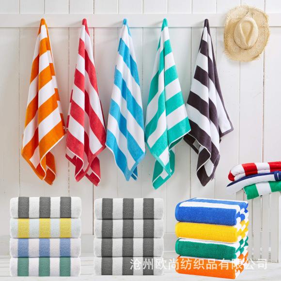 ![]() Toalla de playa a rayas Amazon Cabana transfronteriza personalizada, toalla de piscina de algodón de gran tamaño, toalla de baño de secado rápido y alta absorción.