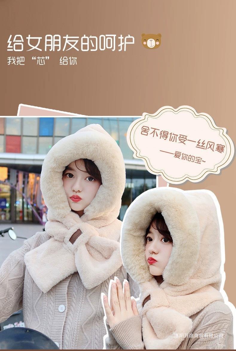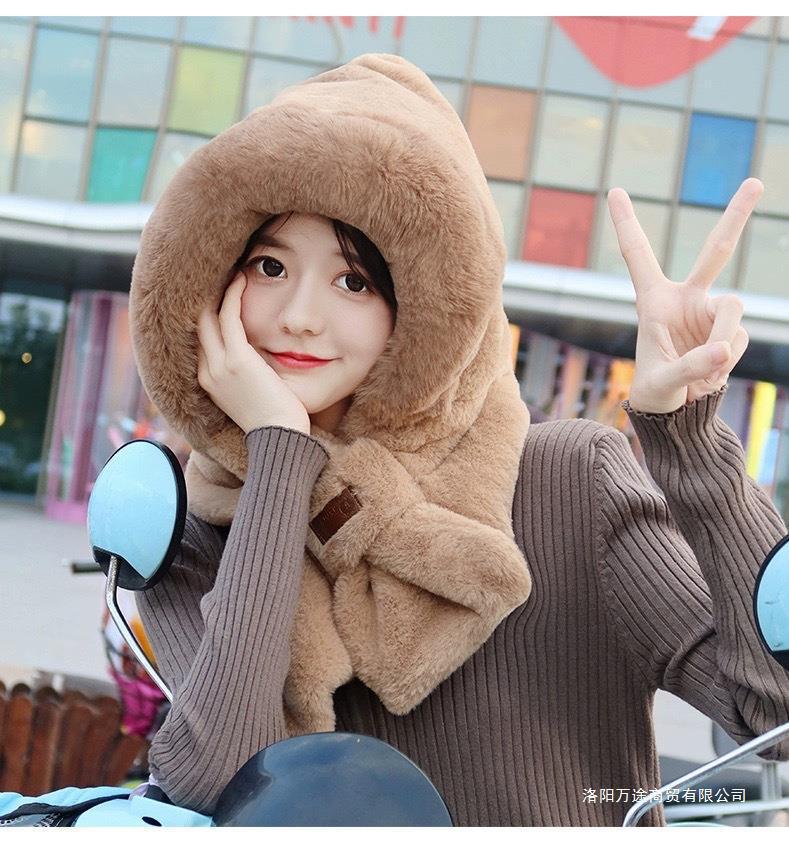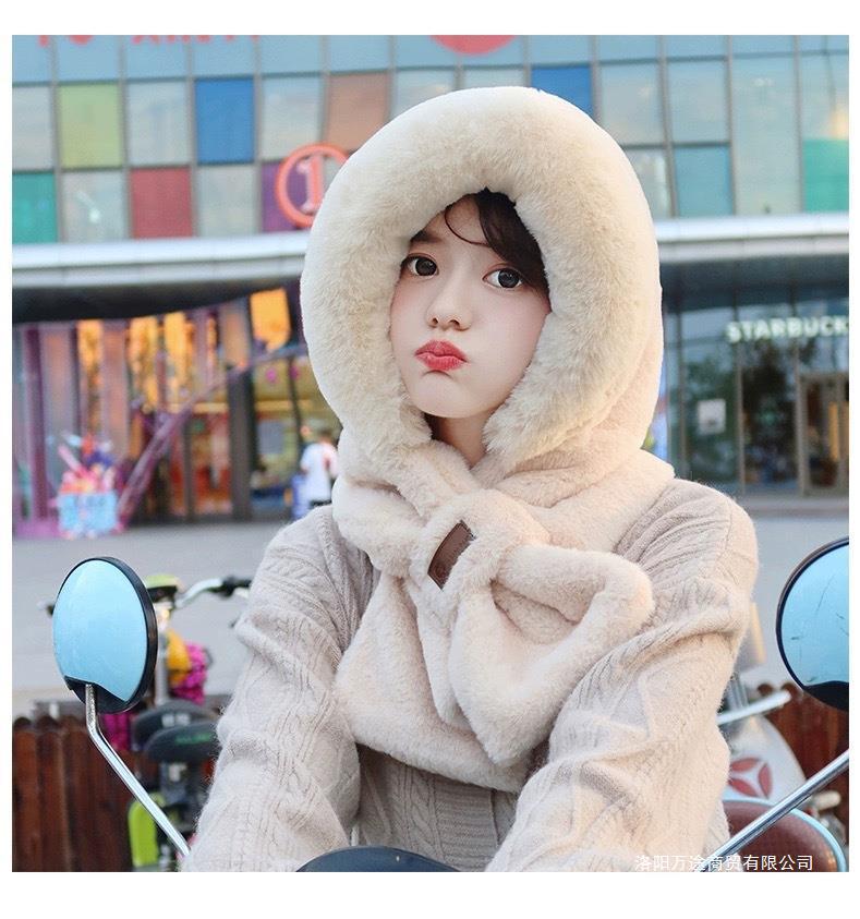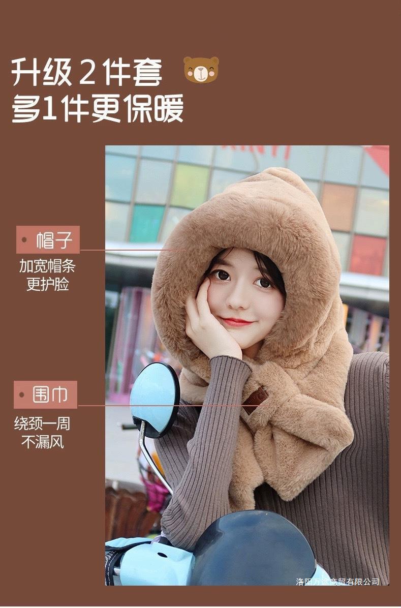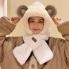 Invierno Felpa Felpa Protección para las Orejas Oso Versátil Lindo Sombrero Bufanda Calentador de Cuello Bufanda con Capucha Ciclismo Todo en Uno Engrosado