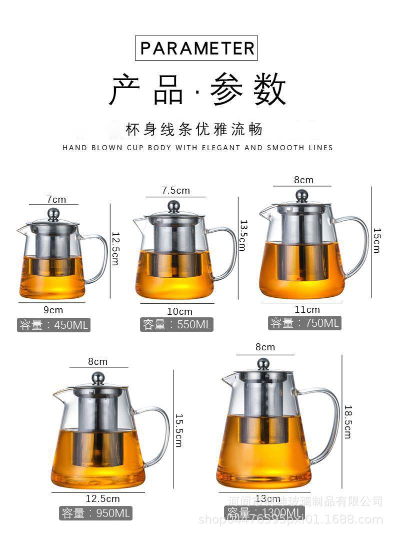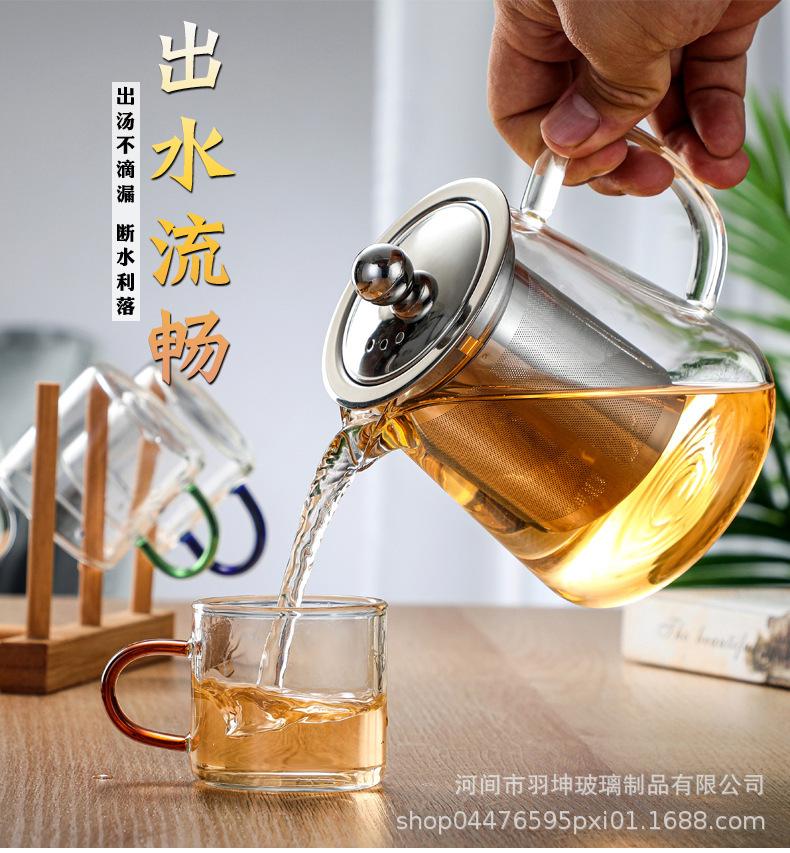 Tetera de Vidrio Transparente con Separación de Agua y Té de Alto Borosilicato, Tetera para Remojo, Hogar, Filtro de Acero Inoxidable, Tetera de Flores, Tetera para Remojo