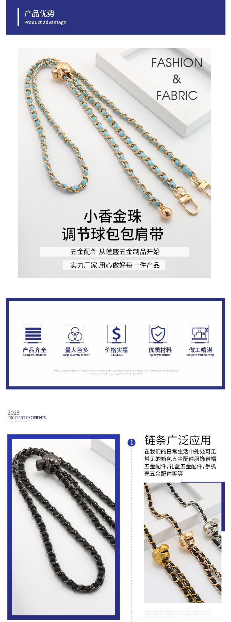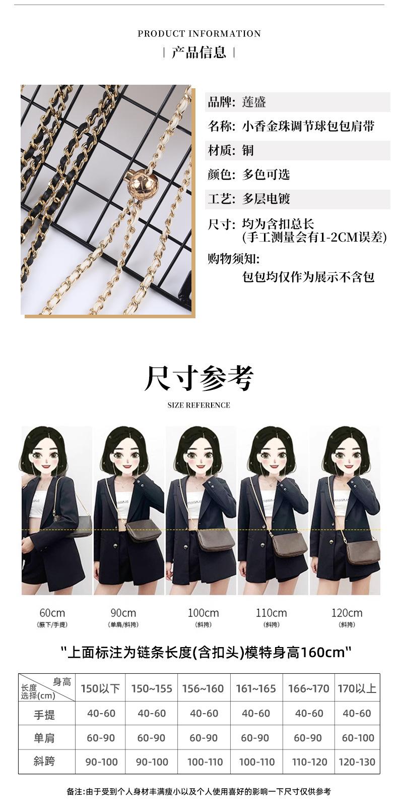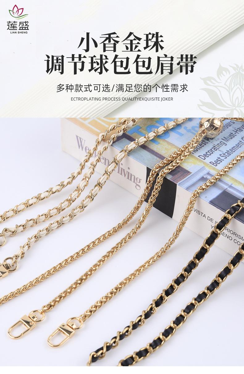 Exquisita bolsa pequeña de bola dorada con hebilla ajustable, accesorios de cadena para bolsa estilo Chanel, correa de hombro ajustable, cadena metálica cruzada