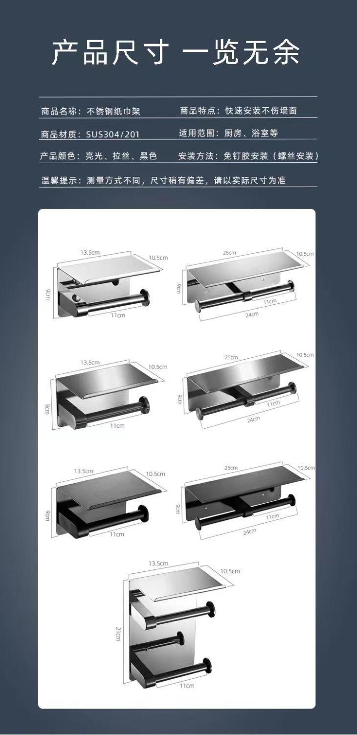 Nuestra fábrica tiene su propio modelo de producción y lotificación, especializándose en una serie de portarrollos de papel de acero inoxidable, toalleros, trípodes, pasamanos, ganchos para ropa, bandejas y otros productos con estilos diversos, gestión honesta, garantía de calidad y aceptando pedidos de Amazon y de exportación.