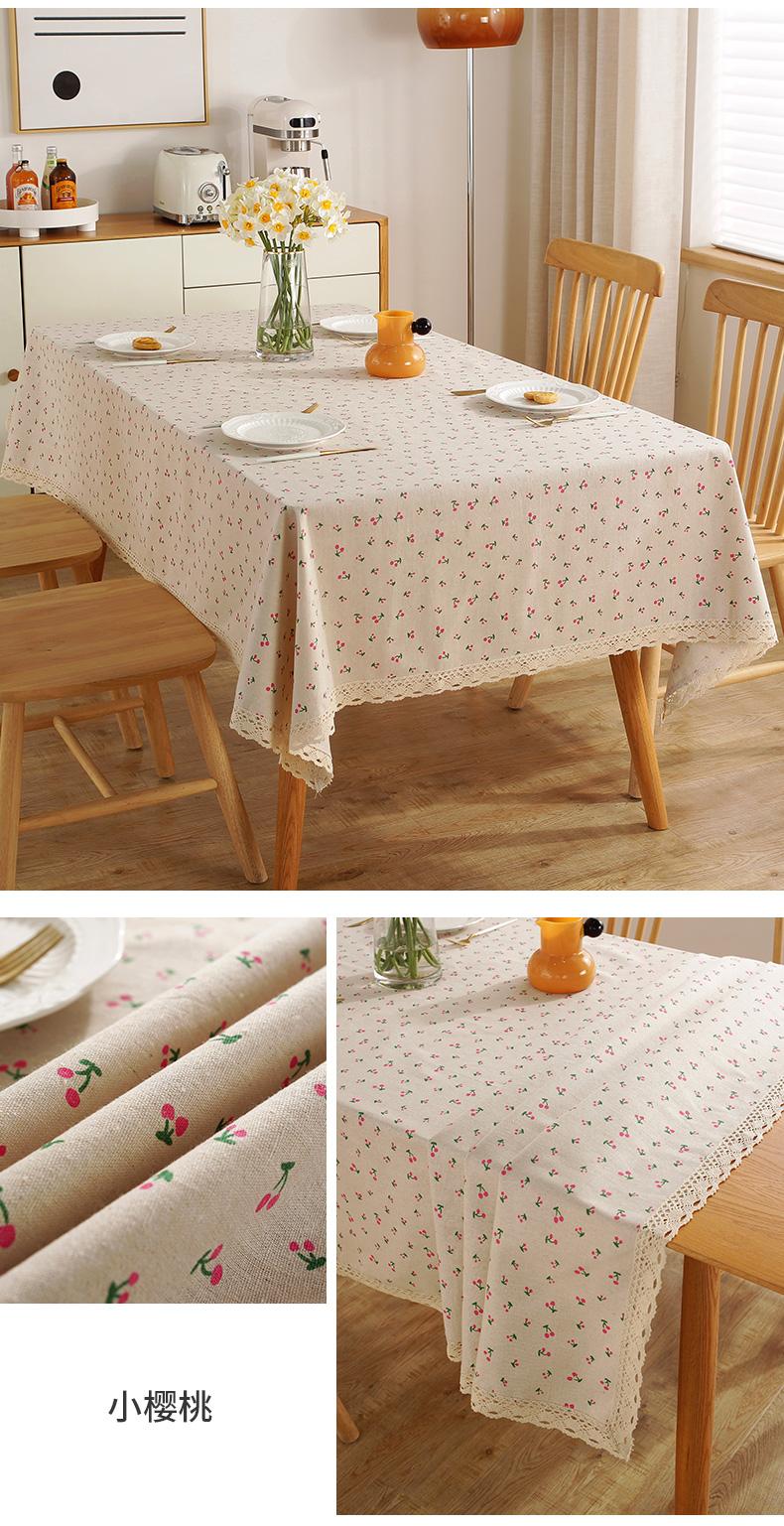 Wbz7 Mantel de Algodón y Lino Encaje Tela Floral Tapete de Escritorio Estilo Ins Estudiante Pequeño Cerezo Rectangular Mesa de Comedor Mesa de Centro