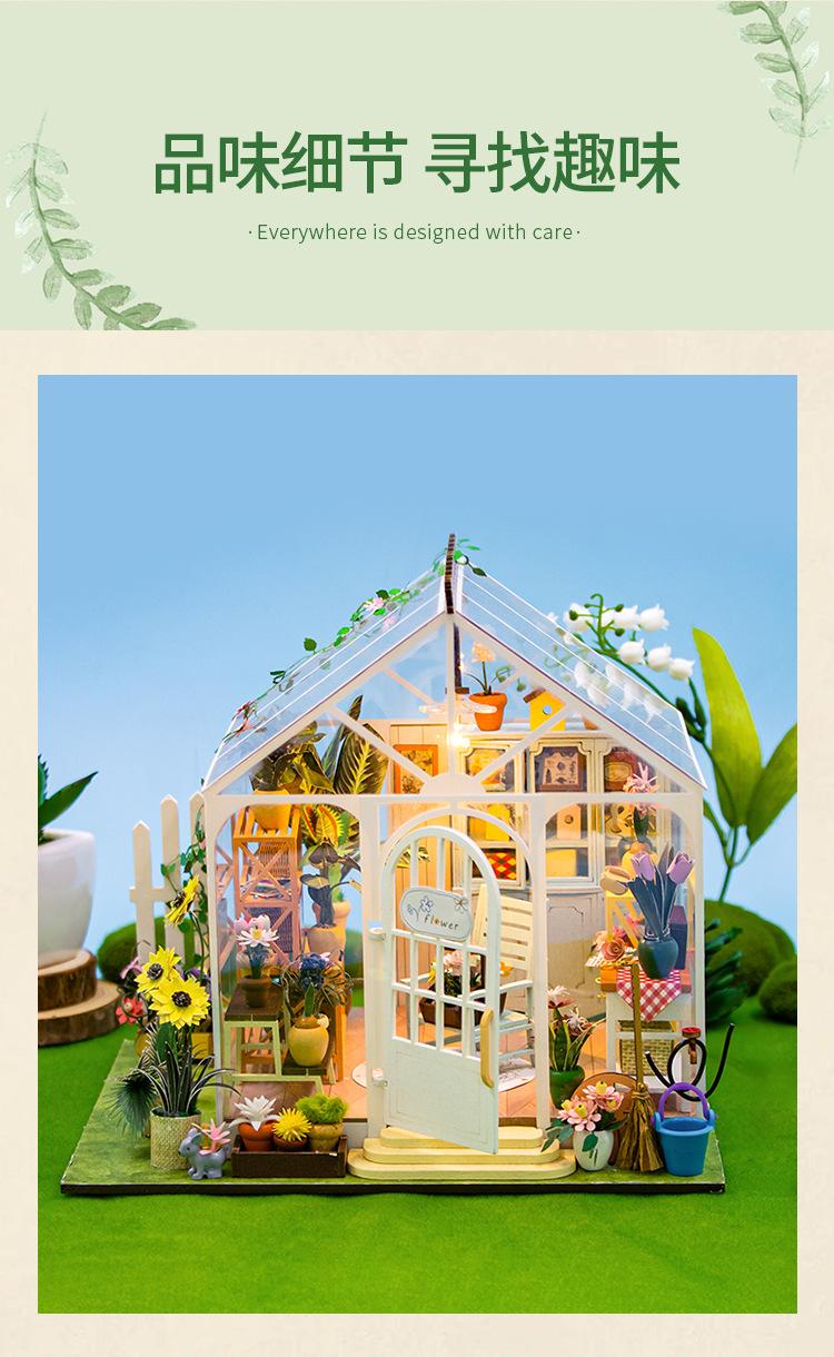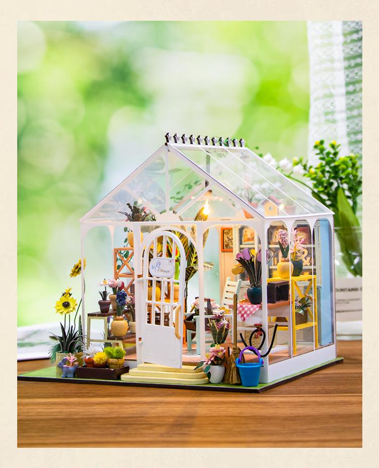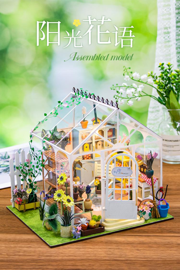 Hongda diy Casa de Muñecas Ensamblada Escena Mini 3D Miniatura de Madera Casa de Flores Regalo de Vacaciones Rompecabezas Marea Fábrica