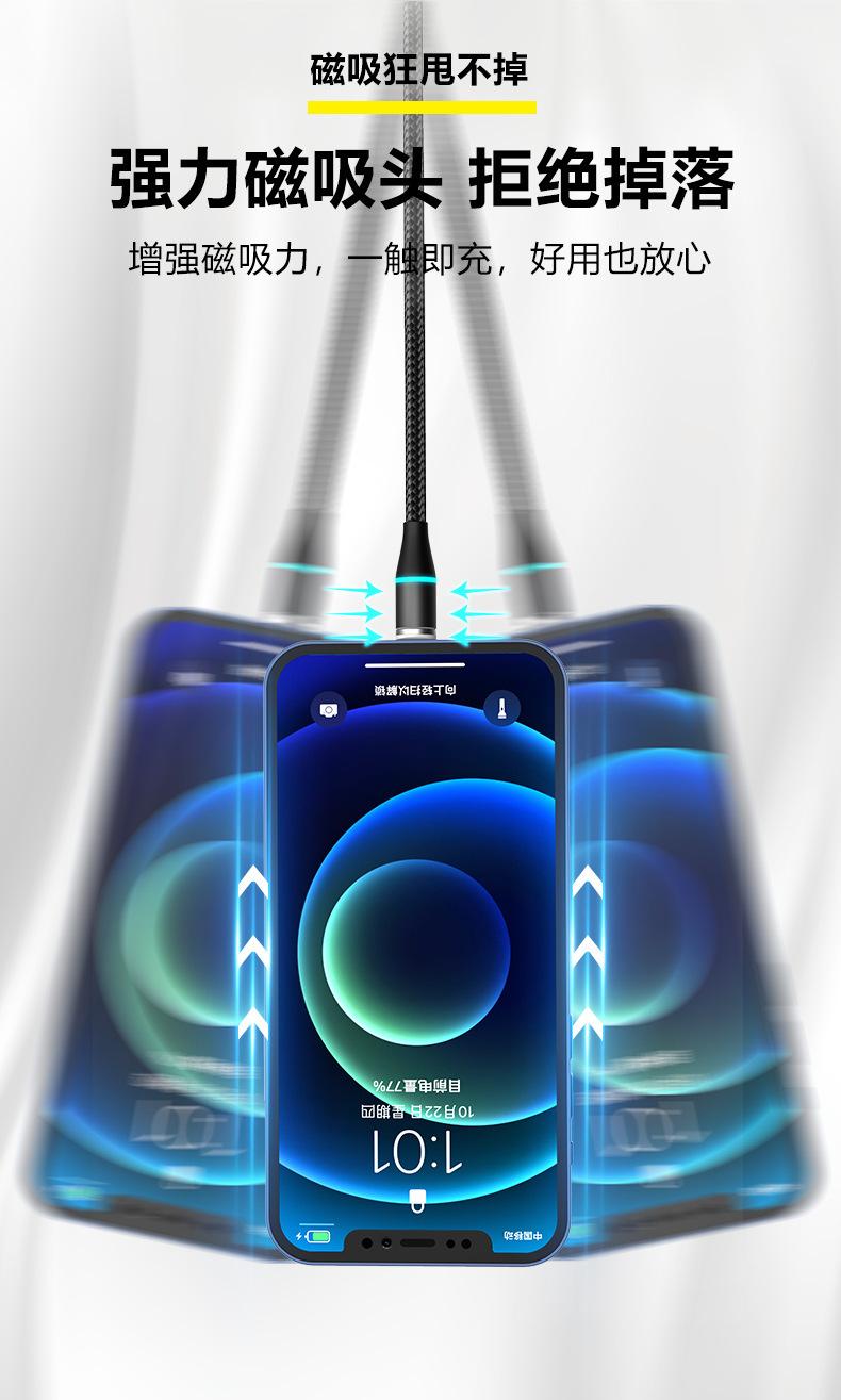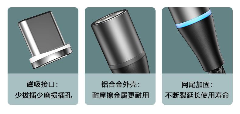 Cable de Datos de Carga Rápida 3A de Succión Magnética Aplicable a Apple Huawei vivo Xiaomi Teléfono Móvil Carga Flash Cable de Carga Tres en Uno