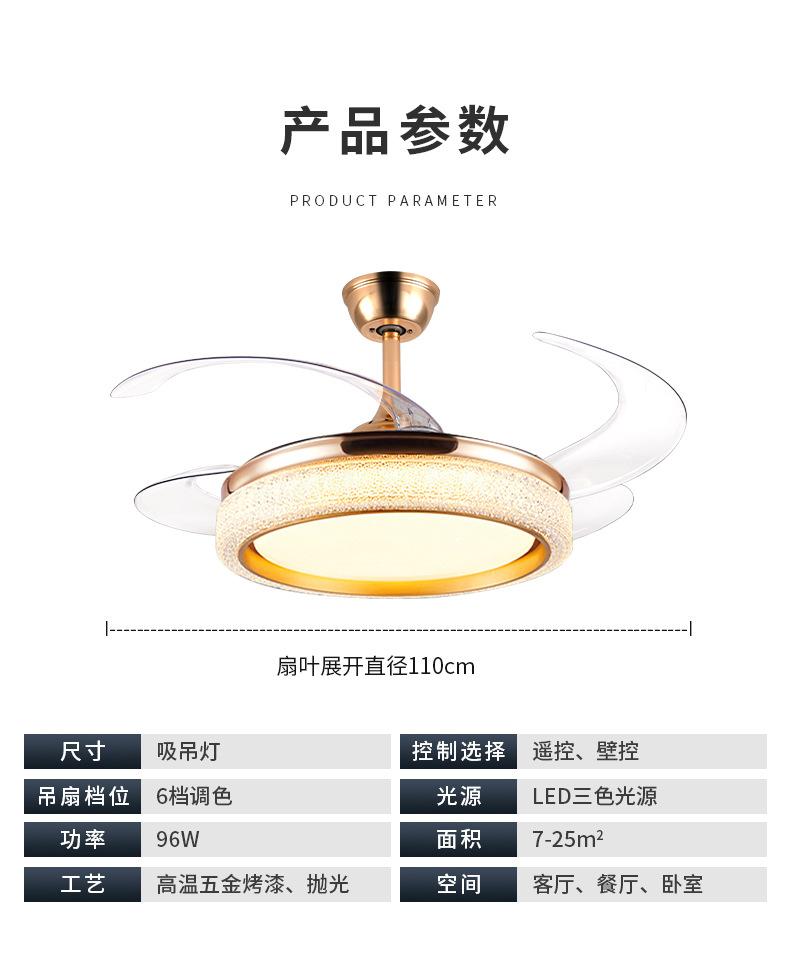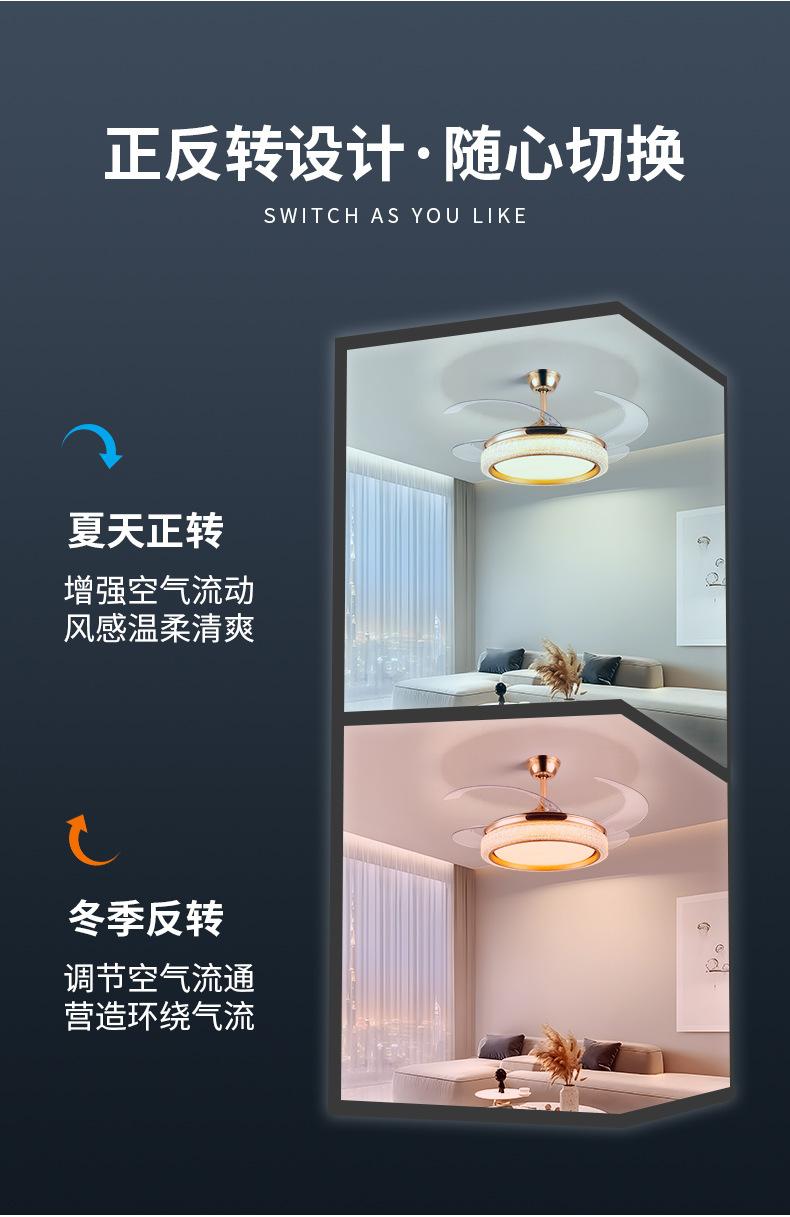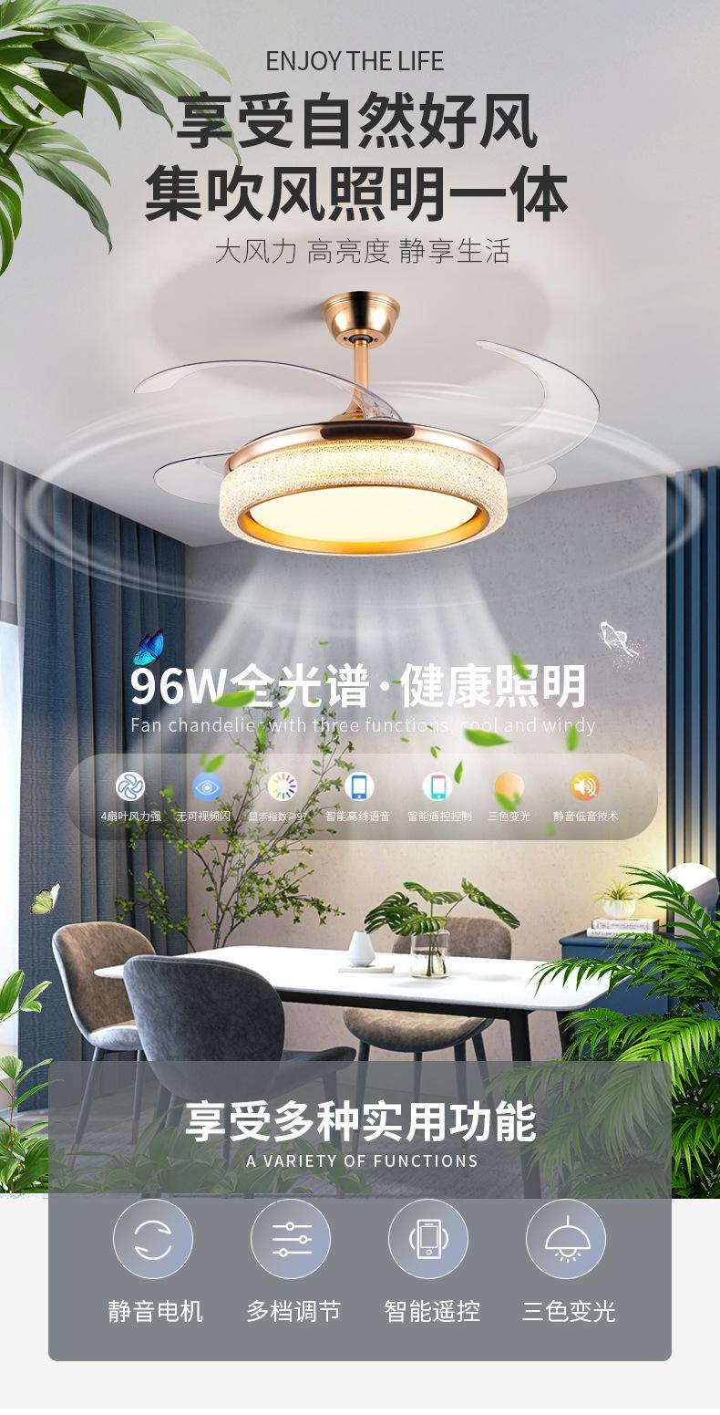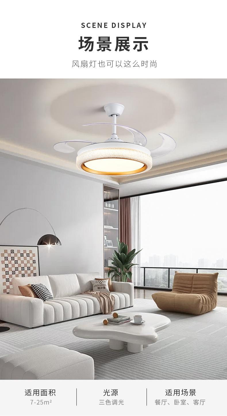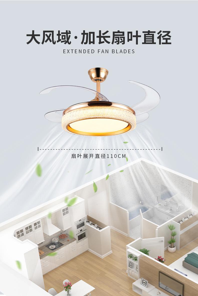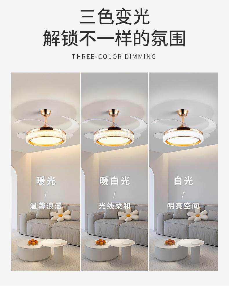 Luz de Ventilador Invisible 2025 Nuevo Ventilador de Techo Invisible para Hogar Sala de Estar Comedor Dormitorio con Lámpara de Araña Integrada