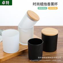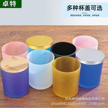 | Venta al por mayor taza colorida para vela de aromaterapia vidrio esmerilado portavelas taza vacía adornos botella de vidrio contenedor de vela con tapa DIY |