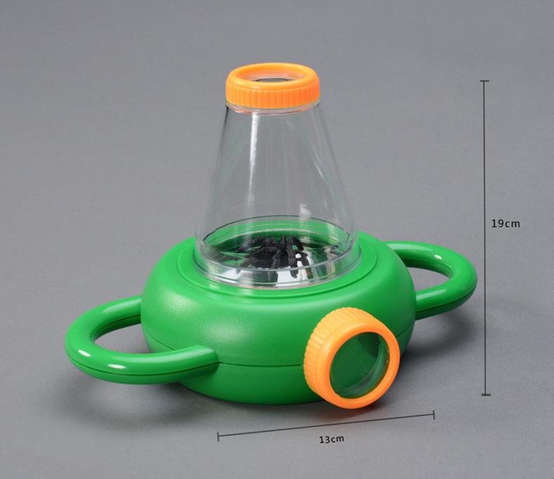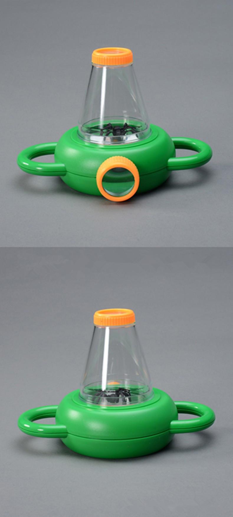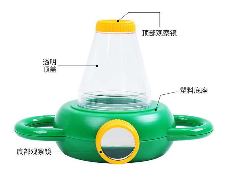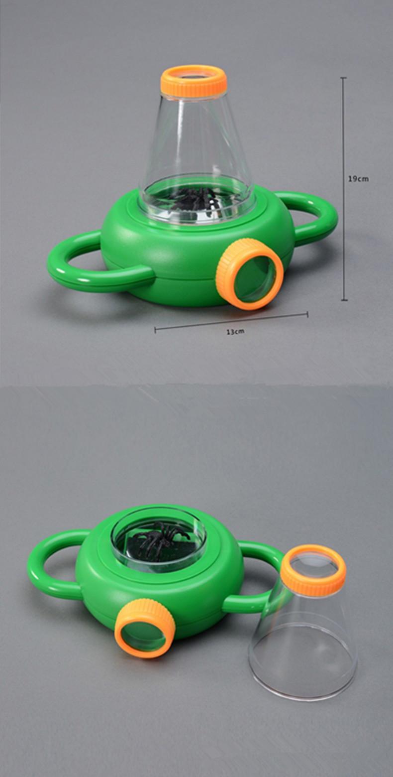 Función: Si no te atreves a tocar el insecto, puedes ponerlo en esta pequeña caja, permitiéndote observarlo cuidadosamente desde arriba y desde el lado, y es muy seguro. La observación se vuelve más interesante debido a la ampliación de la lente convexa y al reflejo del espejo plano