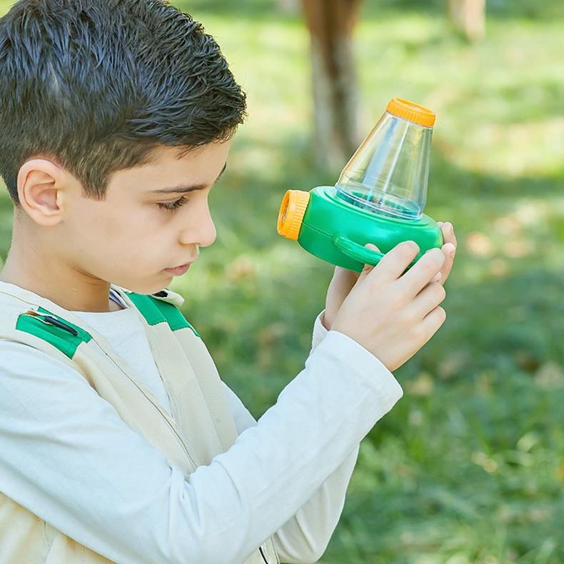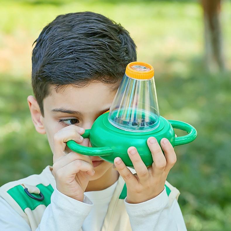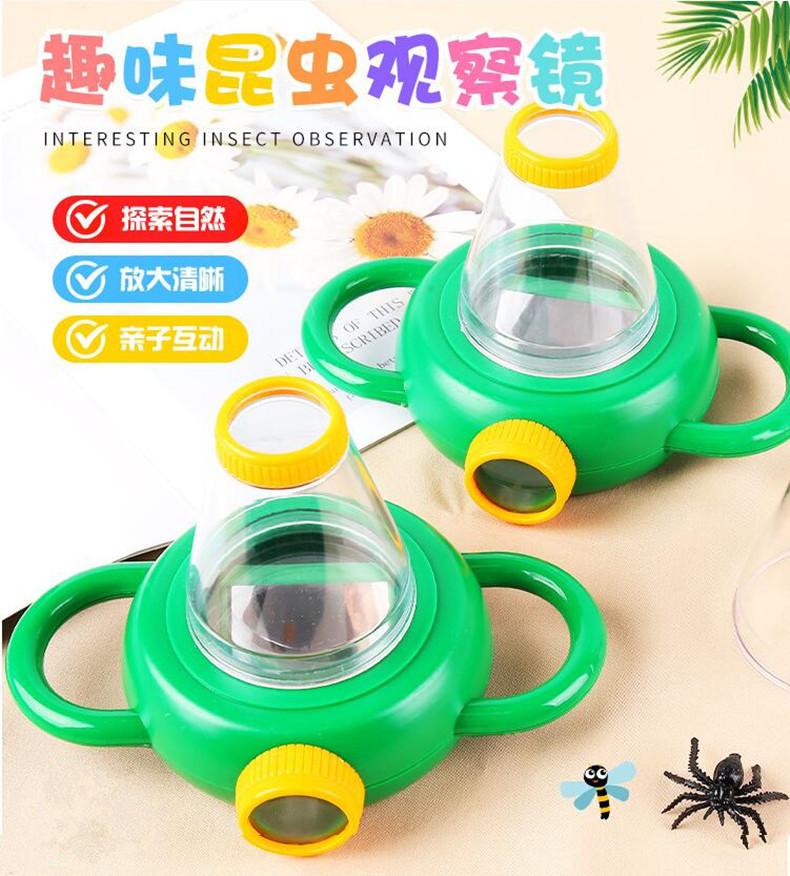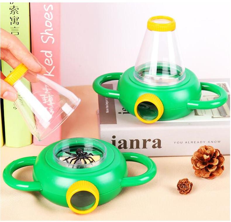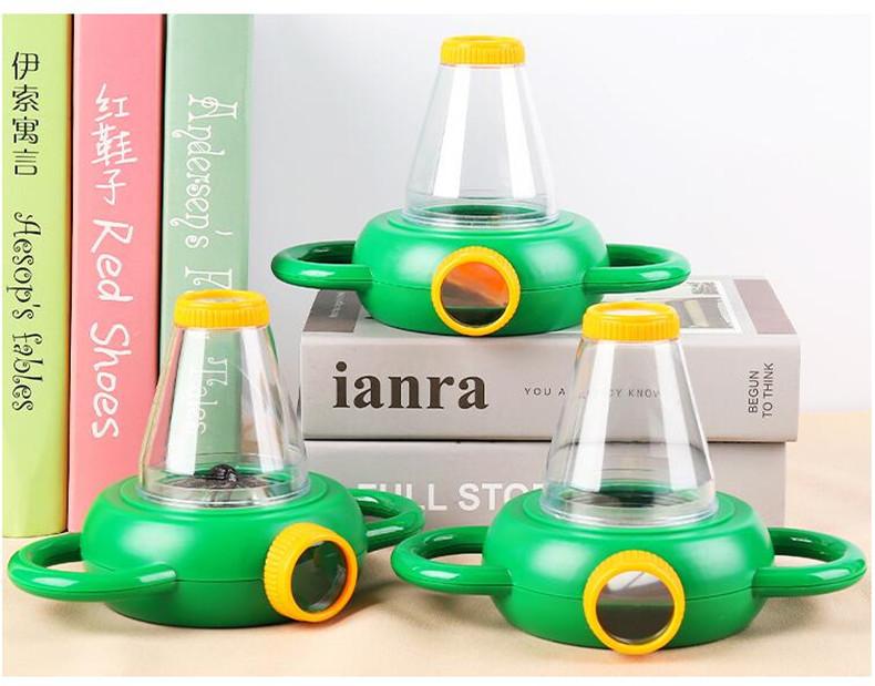 Función: Si no te atreves a tocar el insecto, puedes ponerlo en esta pequeña caja, permitiéndote observarlo cuidadosamente desde arriba y desde el lado, y es muy seguro. La observación se vuelve más interesante debido a la ampliación de la lente convexa y al reflejo del espejo plano