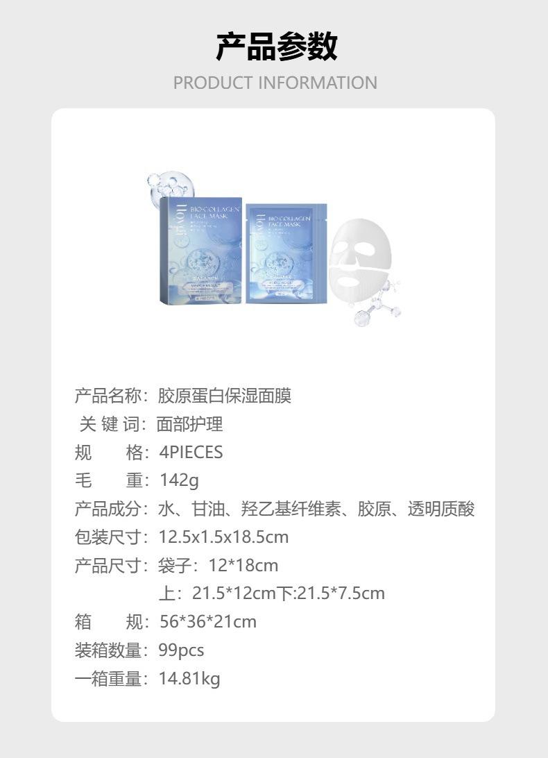 Mascarilla Hidratante de Colágeno HOYGI Nutritiva y Reparadora Hidratante Elástica