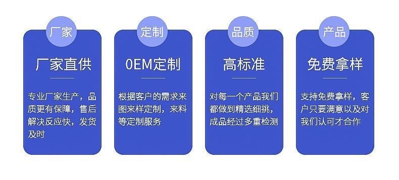 【3】Ciclo de producción: Entrega dentro de 3-5 días a partir de la fecha de establecimiento del pedido. En circunstancias especiales, podemos acelerar el ciclo de entrega a petición suya."Gana pedidos con calidad, recompensa a los clientes con servicio" Bienvenidos clientes a proporcionar diversas muestras. ¡Liste las especificaciones y parámetros, llame, agregue WeChat o escriba para negociar!