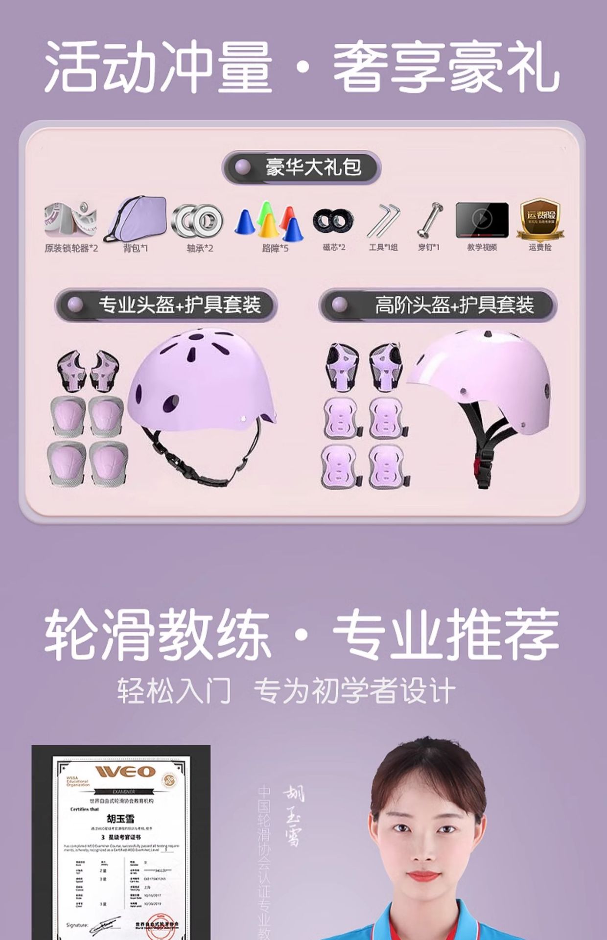 Beginner·anti-fall [purple·standard edition] helmet protective gear + backpack + wheel locker + gift pack