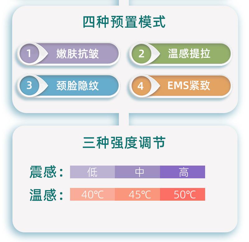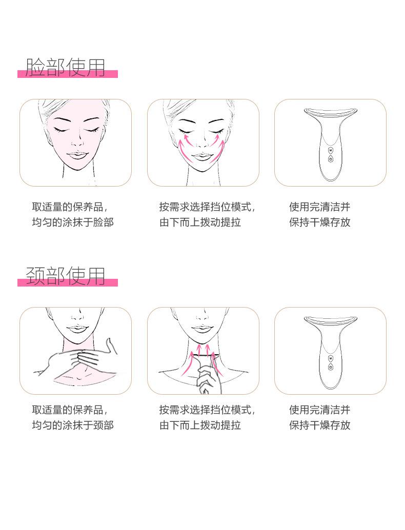 Nombre del producto: Instrumento de belleza para el cuello Modelo de producto: MJY-01 Material: ABS Modo: 4 tipos Marcha: 3.ª marcha Cantidad de embalaje: 48 piezas Peso bruto de toda la caja: ≈12.5kg Tamaño del embalaje: 520*440*280mm |