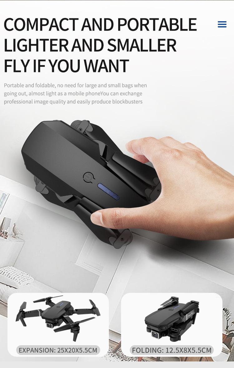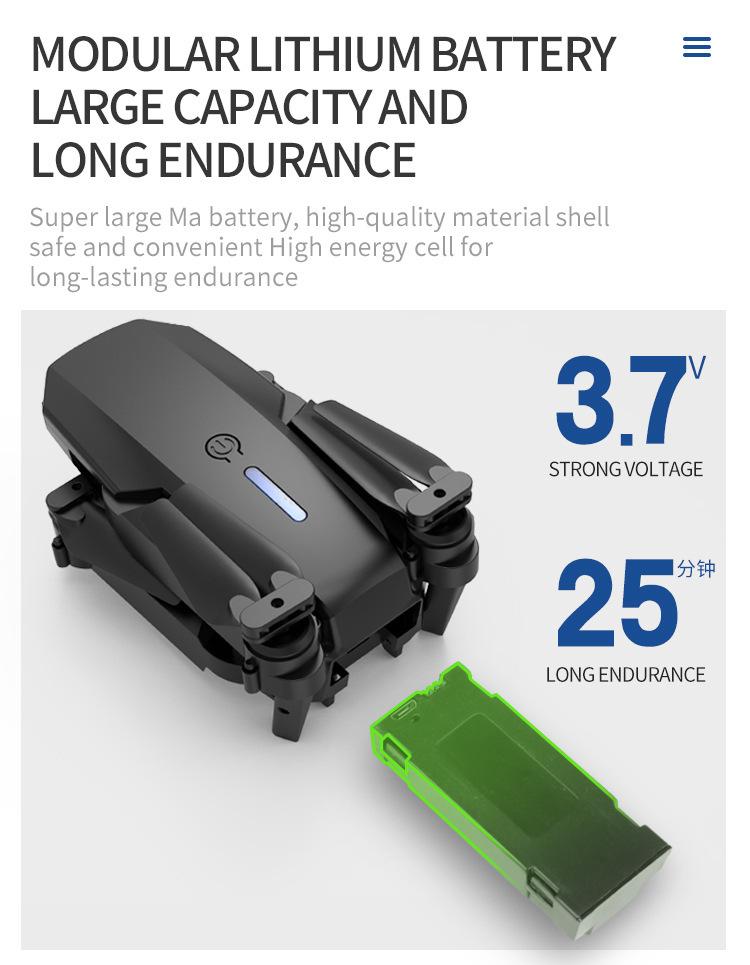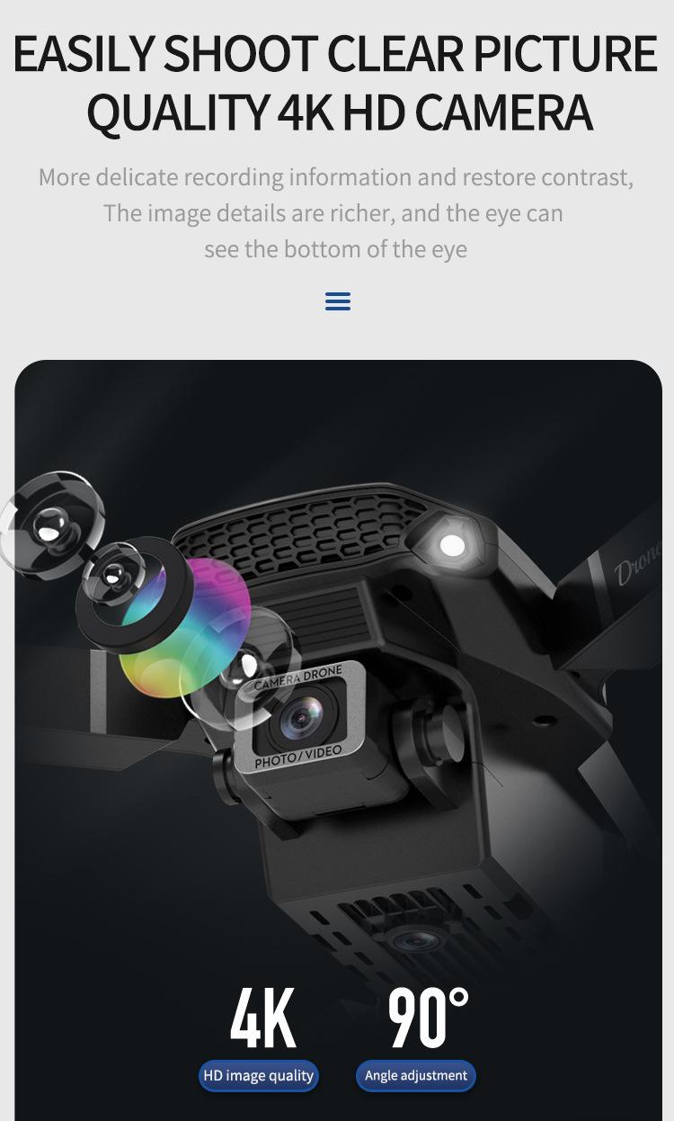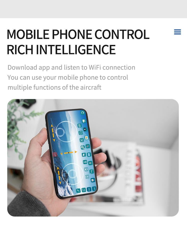 Funciones básicas: función de altitud fija, aeronave plegable, giroscopio de seis canales, despegue con una tecla, aterrizaje con una tecla, retorno con una tecla, reinicio con una tecla, función de ajuste fino, avance y retroceso, vuelo lateral izquierdo y derecho, giro izquierdo y derecho, modo sin cabeza, rollo de 360° [con lente de cámara, funciones adicionales: control por APP, rollo de 360°, foto por gestos, grabación de video, parada de emergencia, vuelo por trayectoria, sensor de gravedad, producción MV, añadir música, función de belleza]
