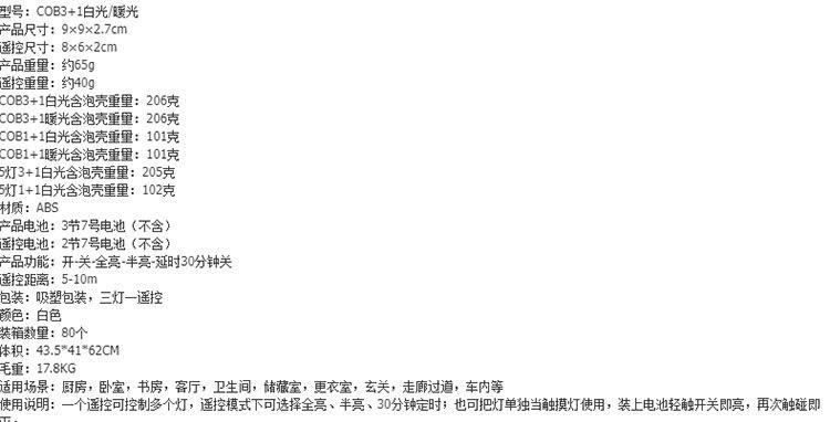 Control remoto COB transfronterizo caliente control remoto mesita de noche cuidado dormitorio armario luz nocturna táctil inducción luz de toque