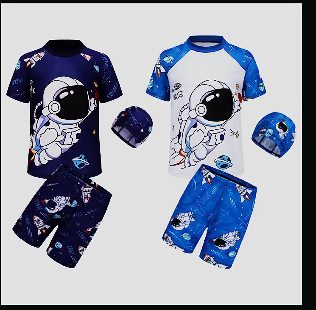 Nuevo traje de baño para niños, traje de baño para bebés, gorro de baño para niños, protección solar para aguas termales, conjunto de bañadores para niños medianos y grandes.precio de descuento:¥25.0