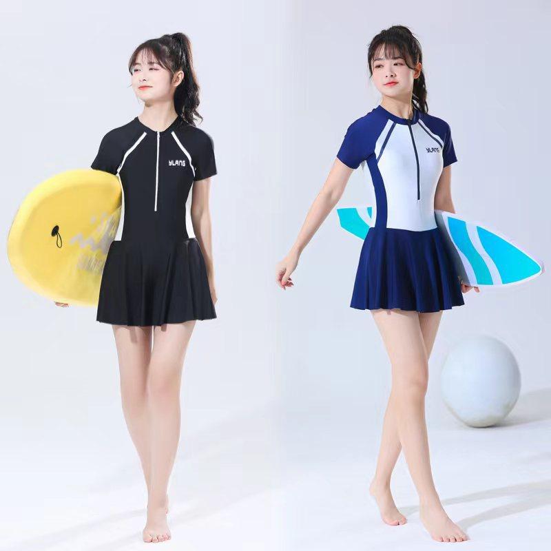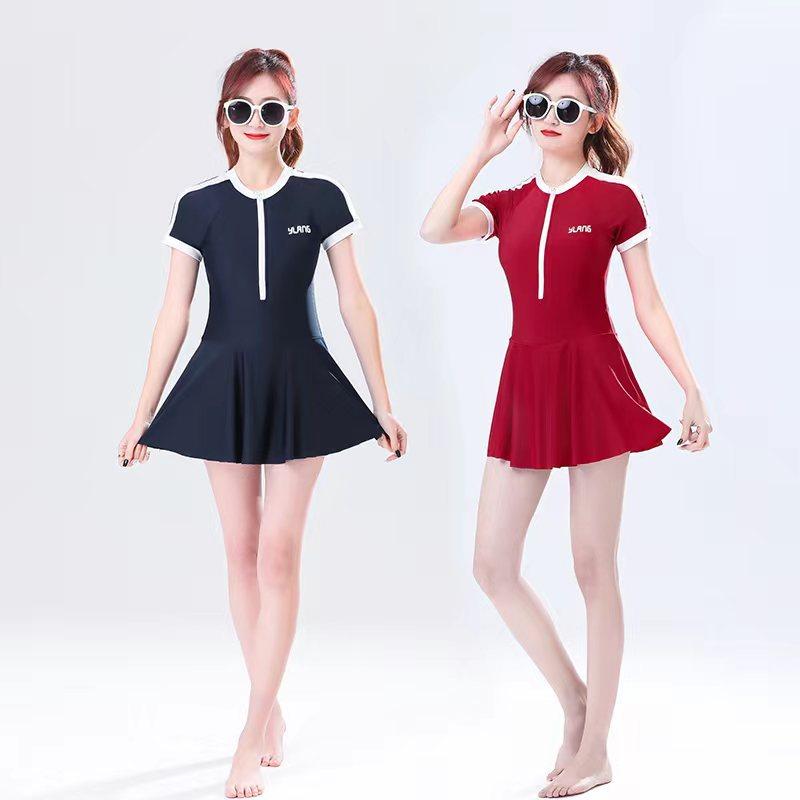 Traje de baño de una pieza para mujeres adultas, conservador, profesional, de aguas termales, de manga corta, para estudiantes, de moda, YLprecio de descuento:¥32.0