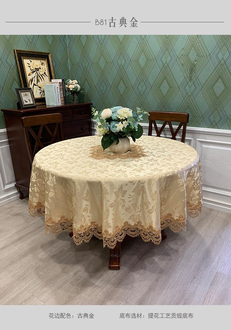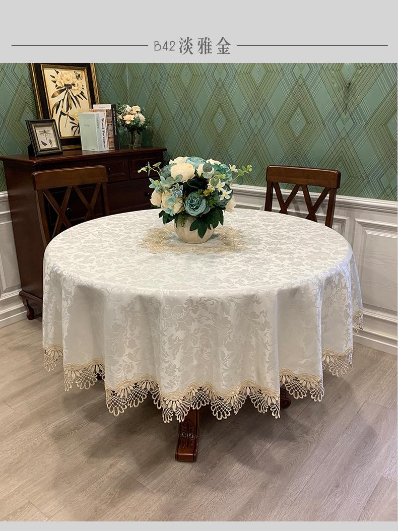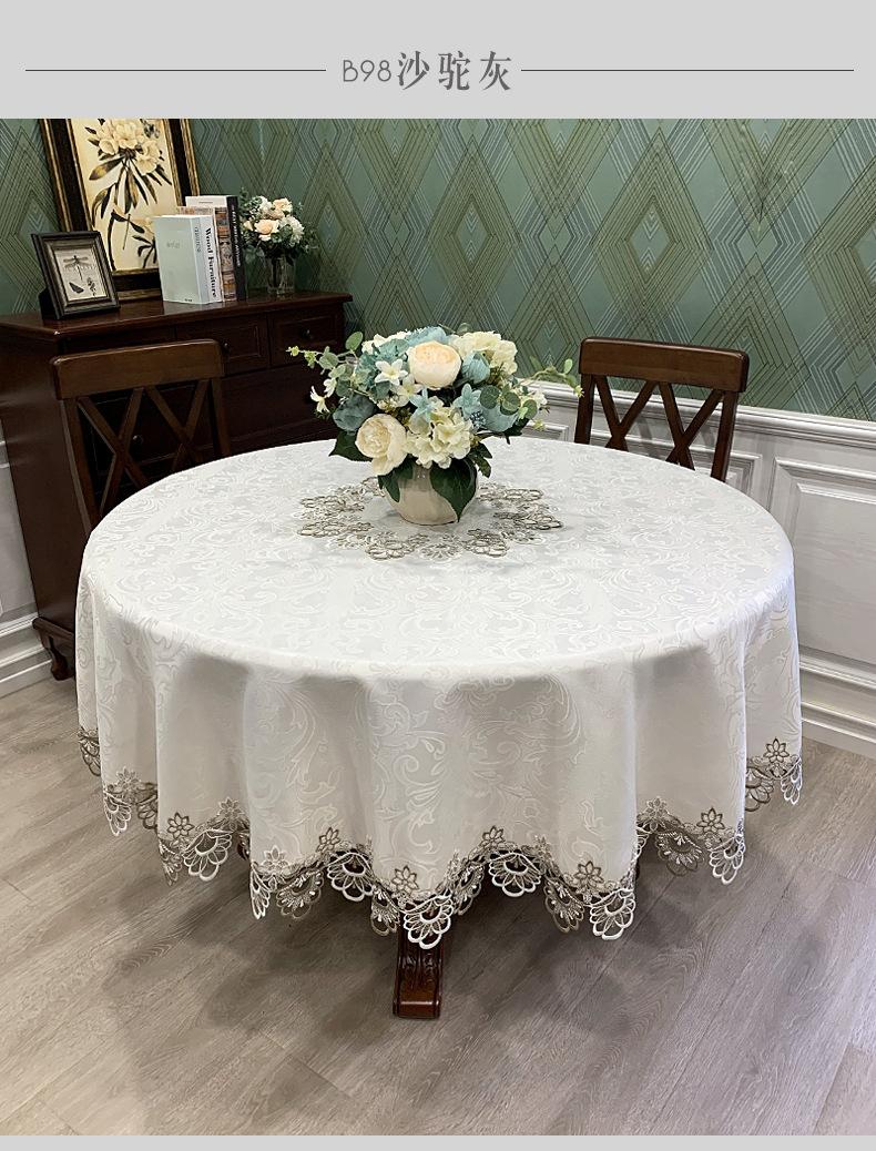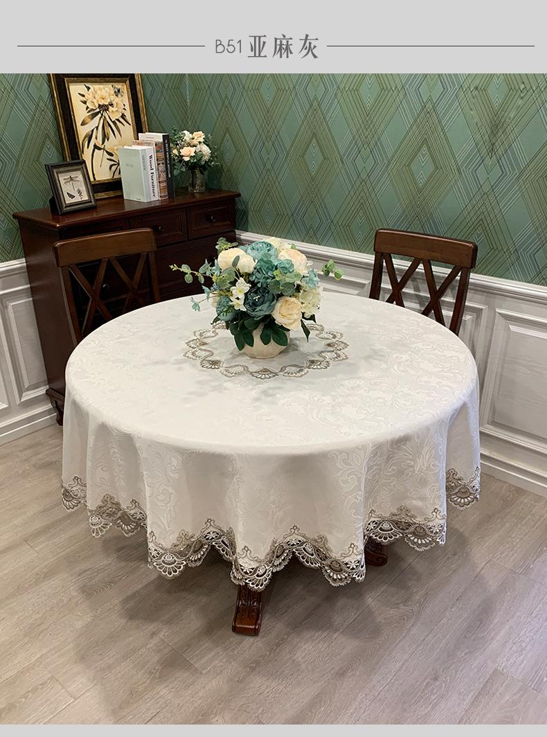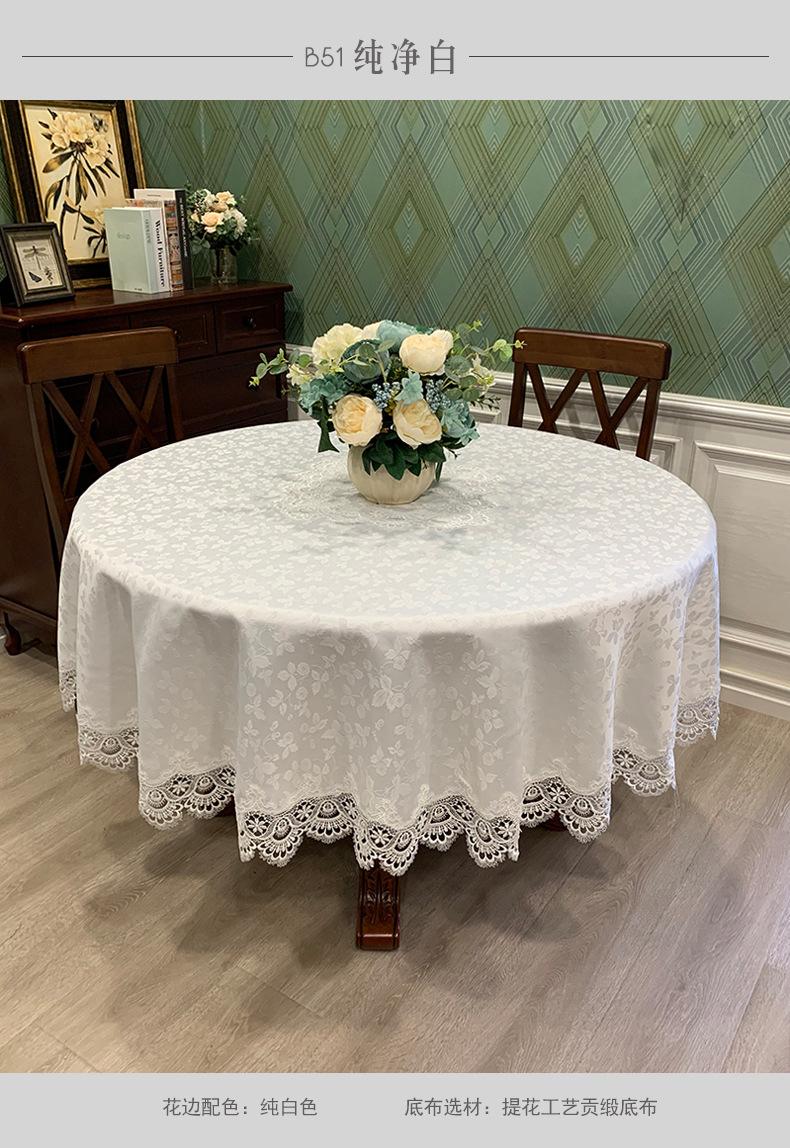 Mantel Redondo de Tela Encaje para Hogar Mantel Redondo Grande Europeo Simple Color Puro Mantel para Hogar a Prueba de Polvo