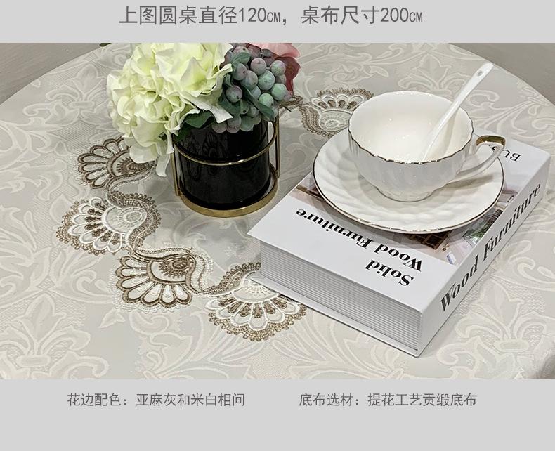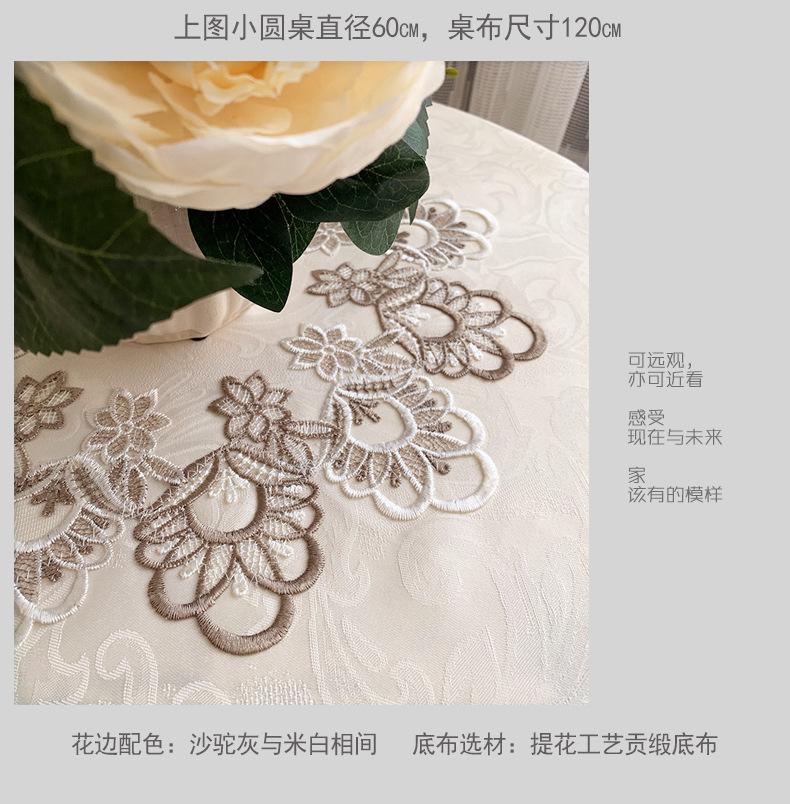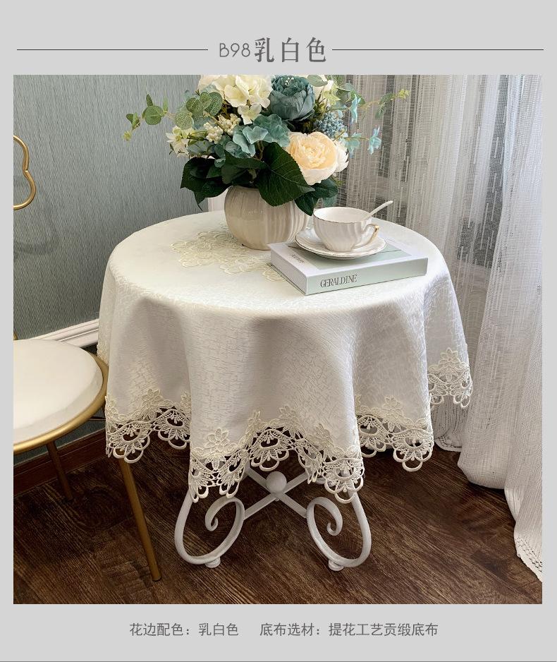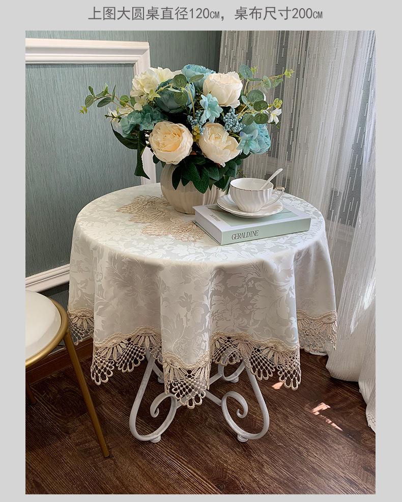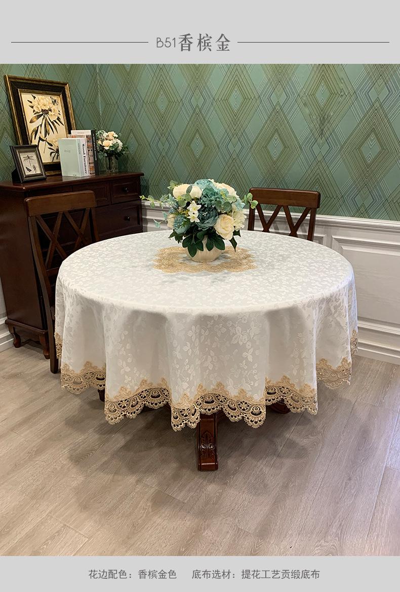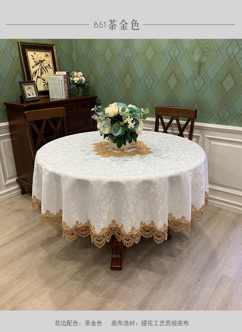 Mantel Redondo de Tela Encaje para Hogar Mantel Redondo Grande Europeo Simple Color Puro Mantel para Hogar a Prueba de Polvo