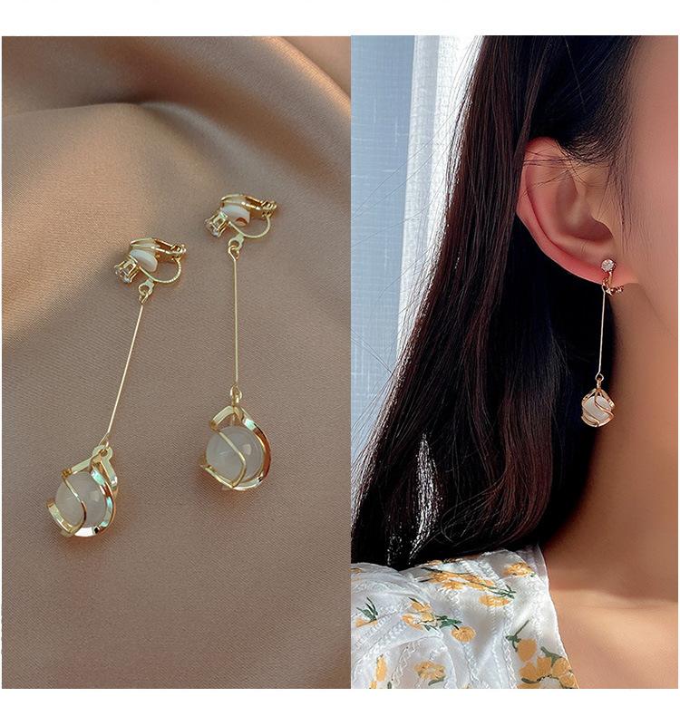 Clip para Oreja de Perla Sin Agujeros en la Oreja Indoloro para Mujer Nuevo Ingreso Diseño Nicho de Lujo Aretes de Placa de Incienso para Mosquitos de Alta Gama Aretes con Borla
