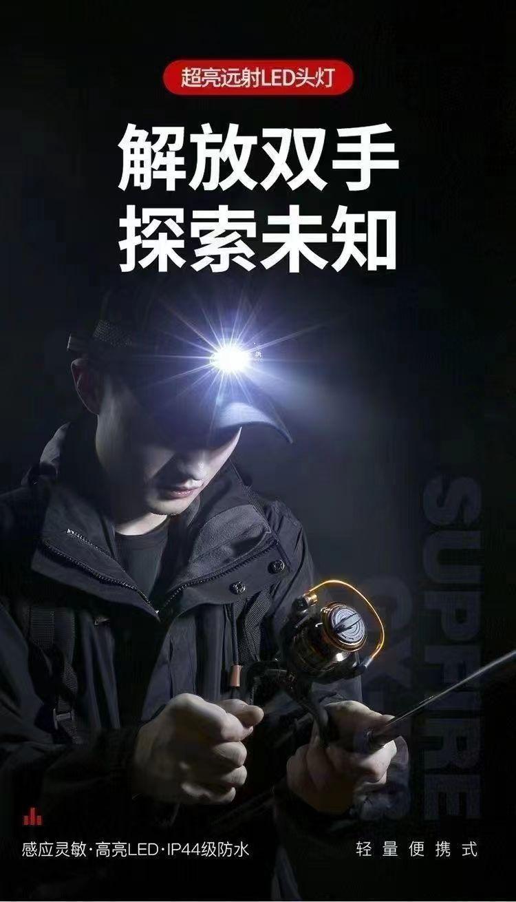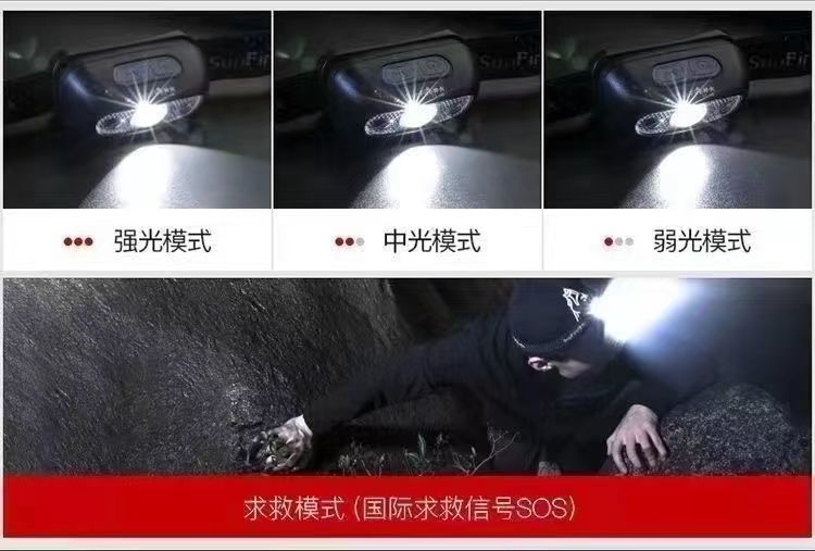 Led headlight portable charging head wearable strong light sensor explosive flashlight small portable night fishing light
