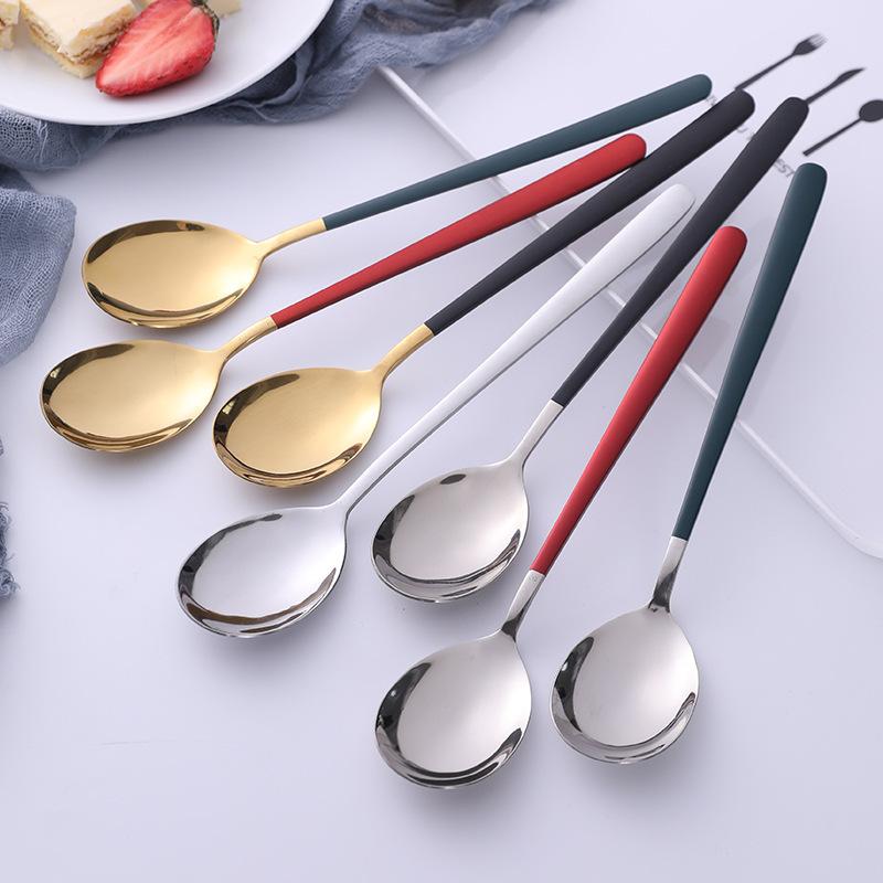Compra Cuchara de Acero Inoxidable Cuchara Creativa para Comer Cuchara Doméstica de Mango Largo Estilo Coreano Chapada en Titanio Cuchara para Revolver Cucharita para Sopa Cuchara de Hierro para Beber Sopa al por mayor en Joom.pro