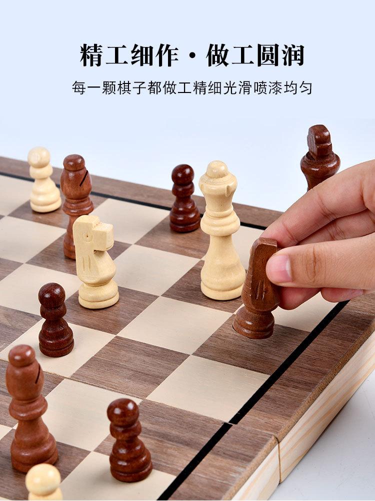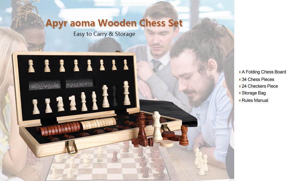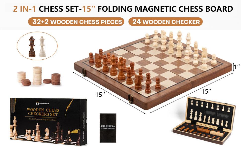 【Diseño Único】Nuestro tablero de ajedrez de madera adopta un tablero magnético, superficie de tablero con artesanía de impresión en madera, la superficie es más resistente al desgaste, muy adecuado para que los niños aprendan el juego de ajedrez fácilmente.