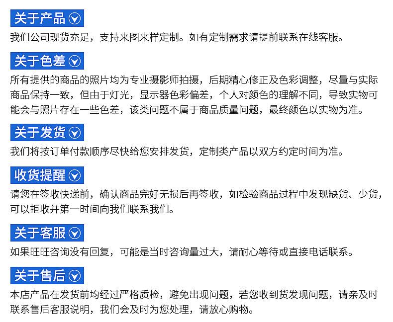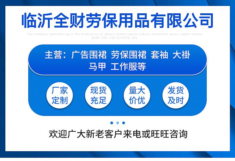 Linyi Quancai Labor Protection Products Co., Ltd. distribuye y vende al por mayor zapatos de protección laboral, ropa de trabajo, cascos de seguridad, cinturones de seguridad, camisetas publicitarias, delantales publicitarios, mascarillas antipolvo, máscaras de gas, batas azules, batas blancas, guantes de látex y guantes de línea, que son populares en el mercado de consumo y gozan de una alta reputación entre los consumidores. La empresa ha establecido relaciones de cooperación a largo plazo y estables con muchos minoristas y agentes. Linyi Quancai Labor Protection Products Co., Ltd. distribuye zapatos de protección laboral, ropa de trabajo, cascos de seguridad, cinturones de seguridad, camisetas publicitarias, delantales publicitarios, mascarillas antipolvo, máscaras de gas, batas azules, batas blancas, guantes de látex y guantes de línea con variedades completas y precios razonables. Linyi Quancai Labor Protection Products Co., Ltd. otorga gran importancia al crédito, cumple los contratos y garantiza la calidad de los productos. Se ha ganado la confianza de los clientes con sus características comerciales multivariadas y el principio de pequeñas ganancias pero rápida rotación.