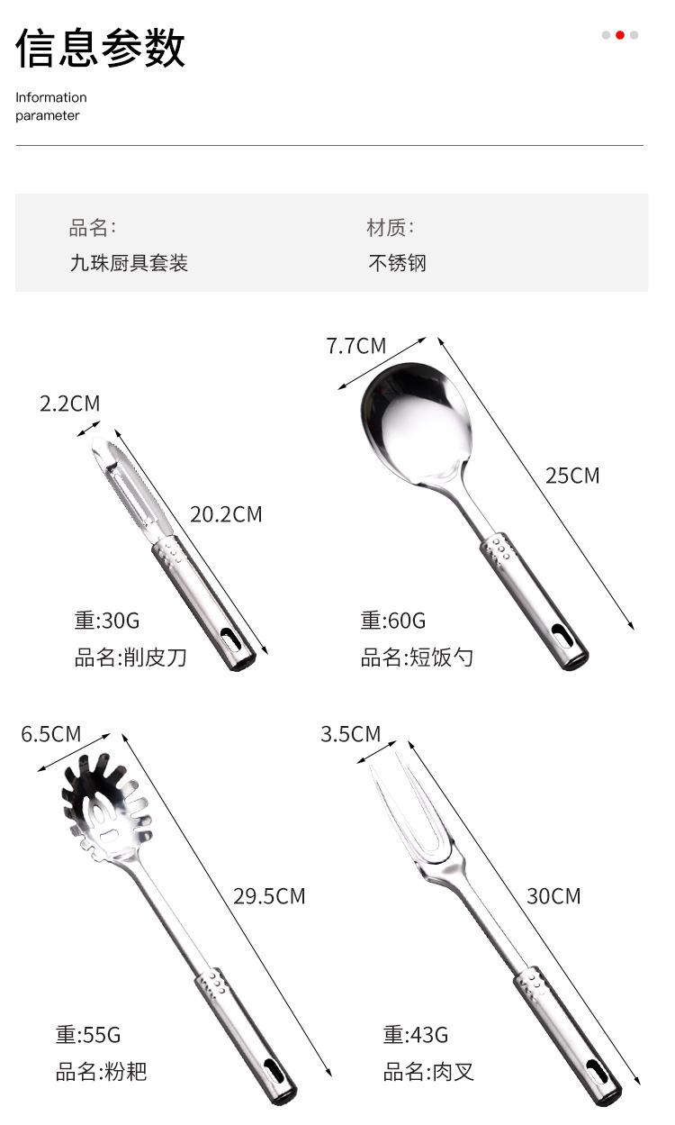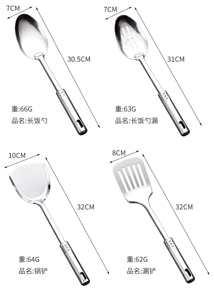 Large colander, Rice spoon, Dispensing spoon, Vegetable spoon, Split meat fork, Noodles, Spatula, Leaky shovel...