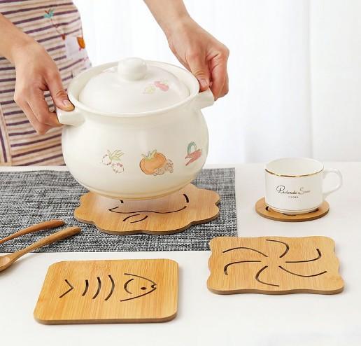 Posavasos de Madera Hueco Cocina Engrosado Antiescaldante Aislamiento Térmico Mantel Individual Antideslizante Salvamanteles para Olla Salvamanteles para Tazón Salvamanteles para Plato Posavasos