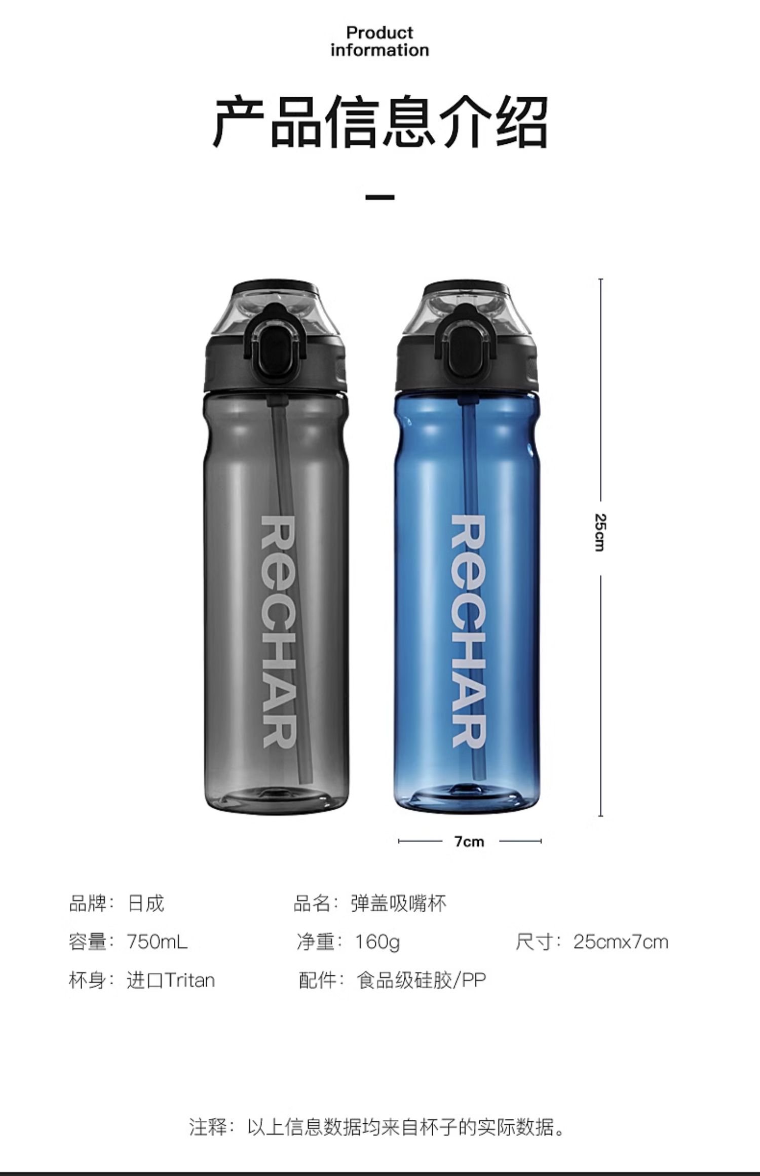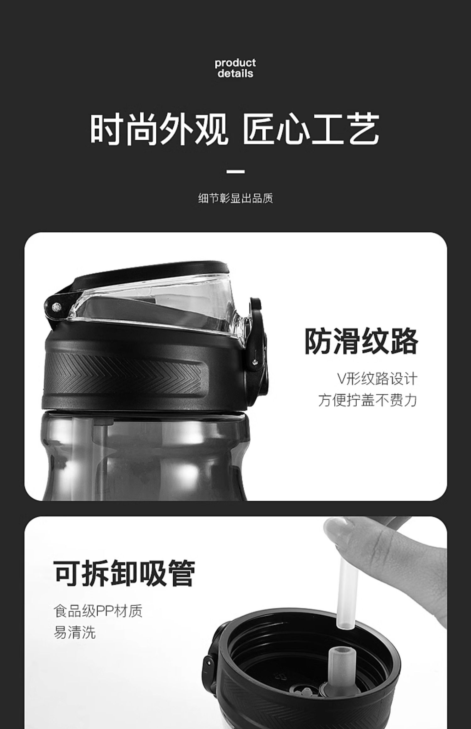 Vaso de Agua Deportivo para Hombre Tritán Gran Capacidad Vaso para Fitness Resistente a Altas Temperaturas Estudiante Anti-Caída Portátil Plástico Completo