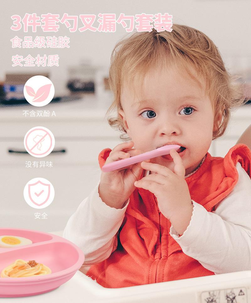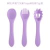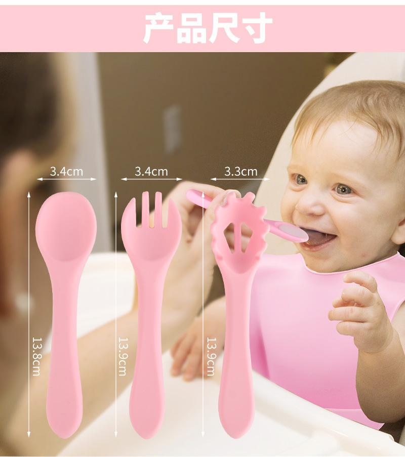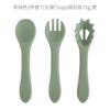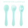 Juego de tres piezas de tenedor y cuchara suave de silicona de grado alimenticio Dumo Vajilla para alimentos complementarios Set para aprender a comer para bebés Set de alimentación