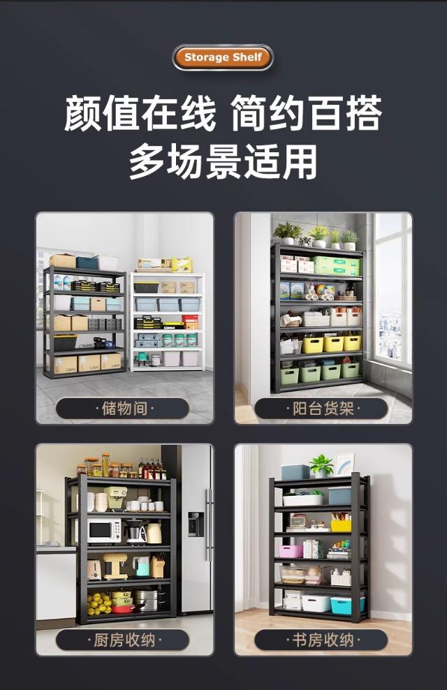 Estante de Almacenamiento Doméstico Estante de Almacenamiento de Piso Multicapa Sala de Almacenamiento Acero al Carbono Estante para Abarrotes Almacén Supermercado Estante de Almacenamiento