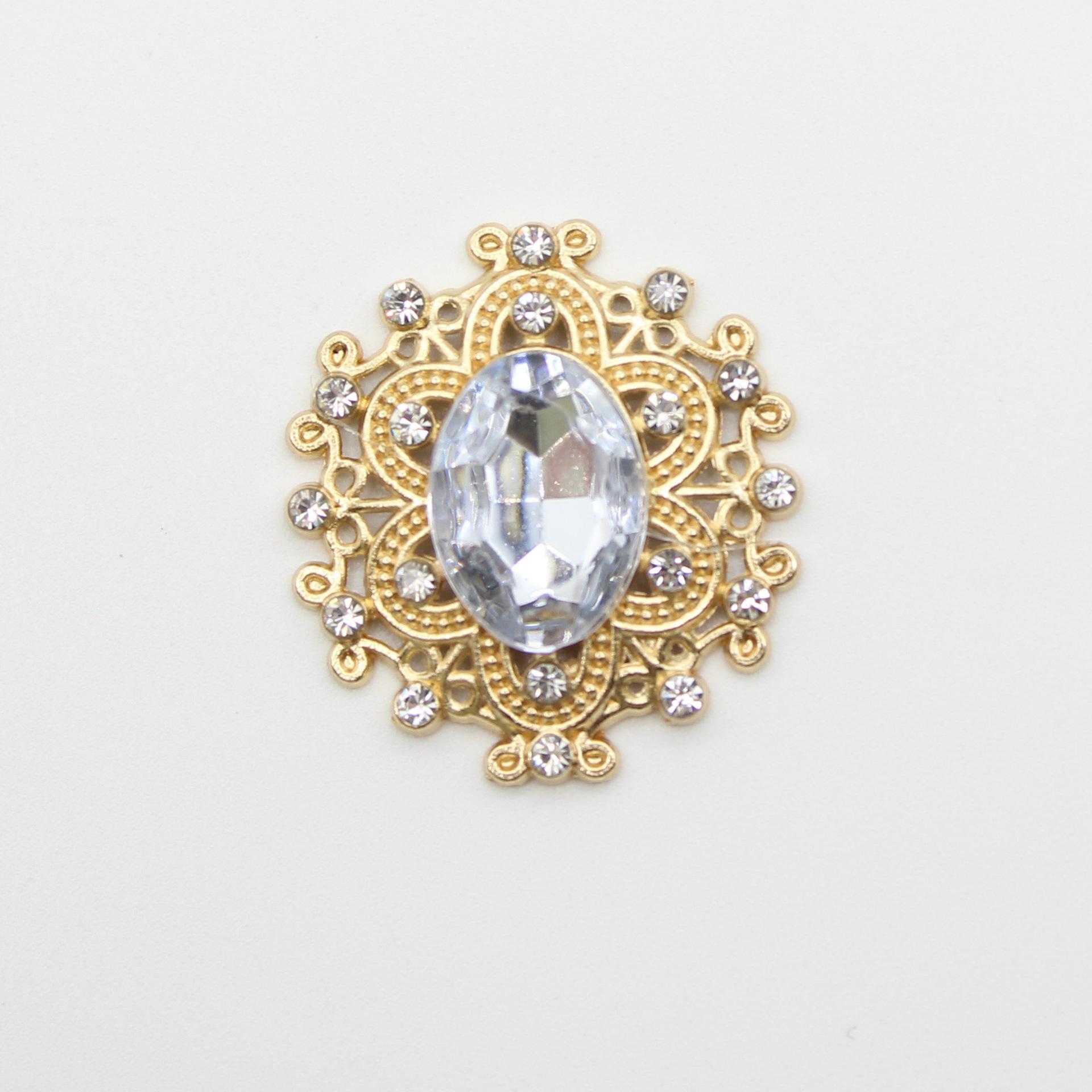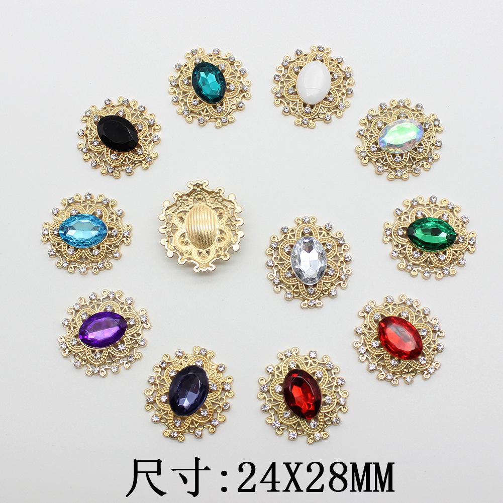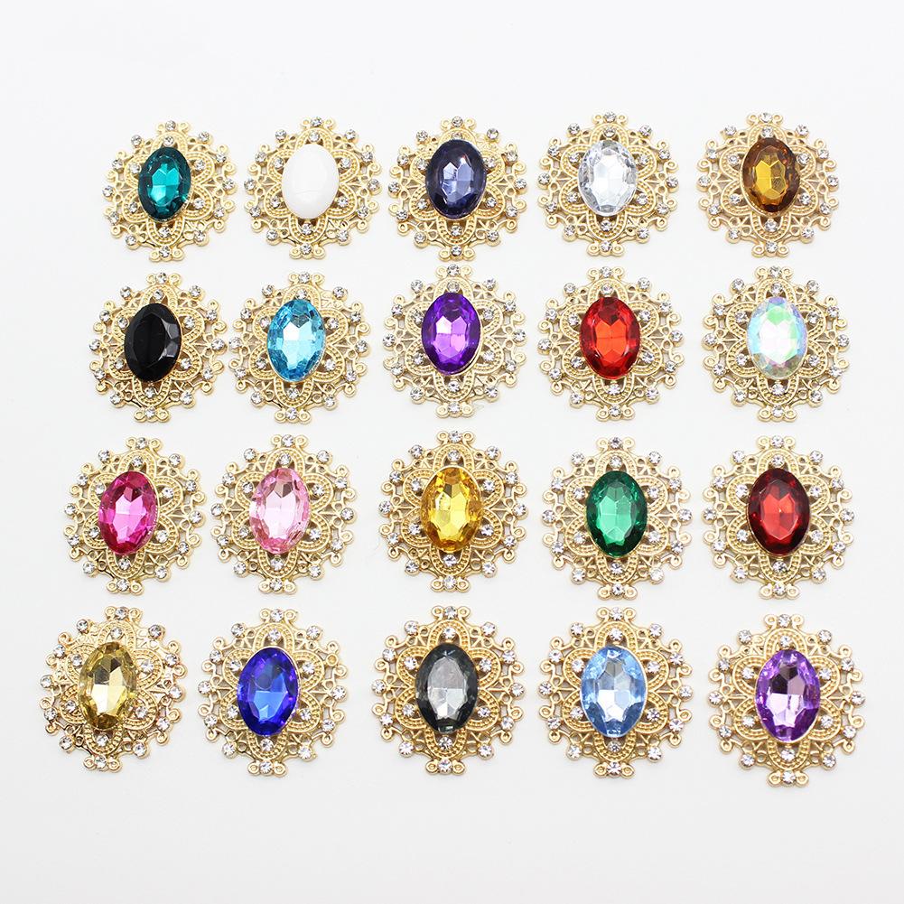 Plato de flor de aleación de oro con diamante acrílico ovalado de gran venta, hebilla de diamante para joyería DIY, accesorios para el cabello semiacabados para boda