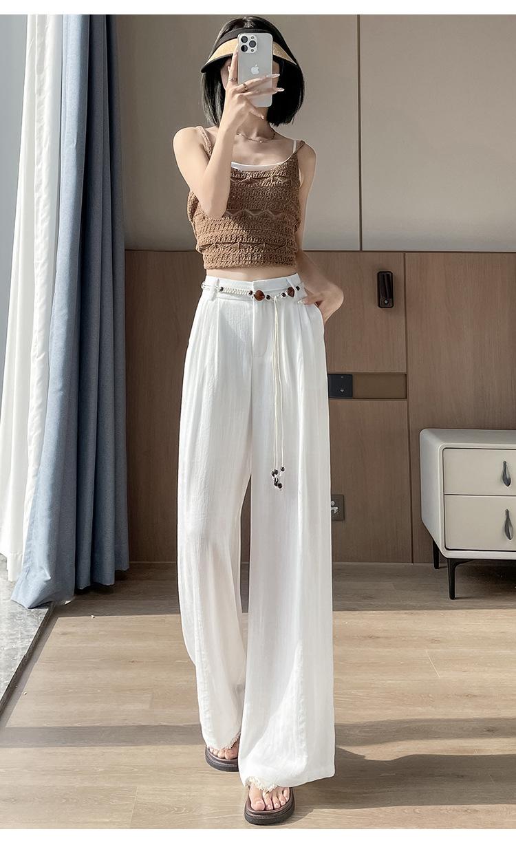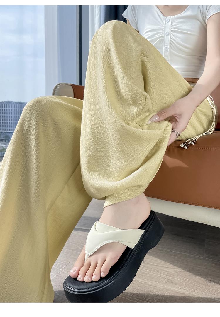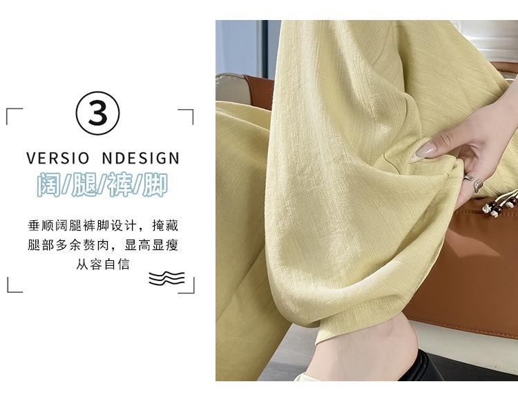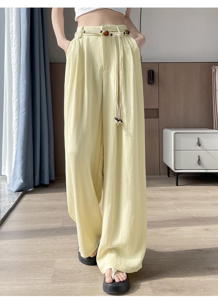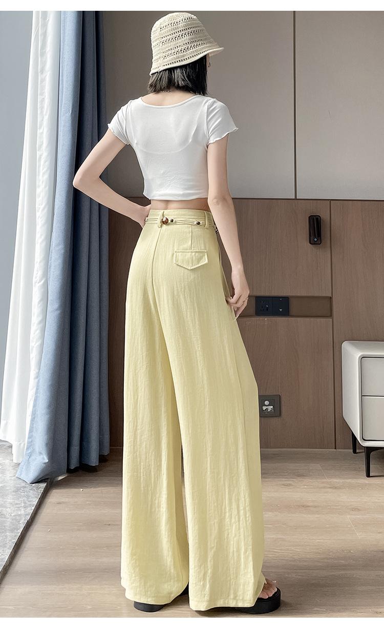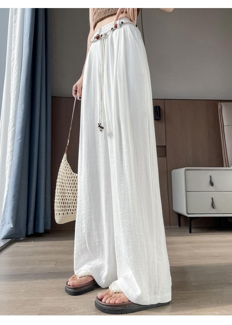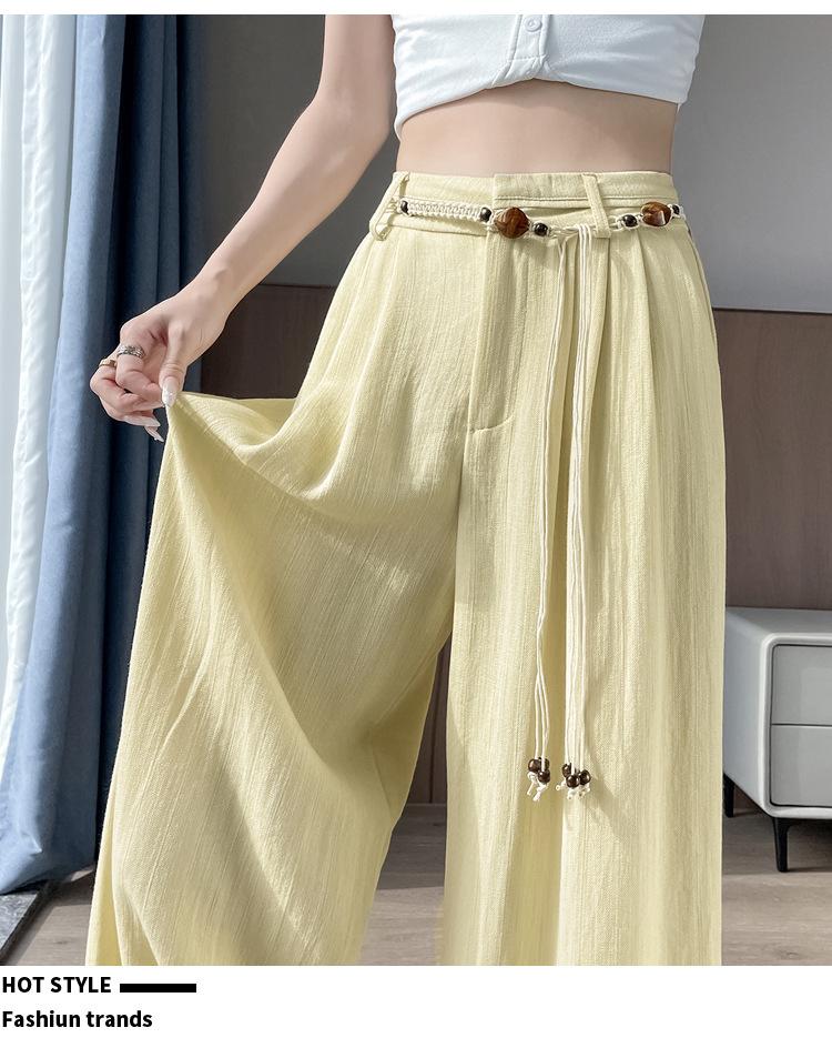 Pantalones de pierna ancha de algodón y lino de seda de hielo de tiro real para mujer, verano delgado 2025 nuevo drapeado de cintura alta, pantalones casuales sueltos