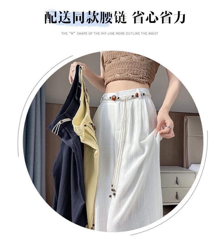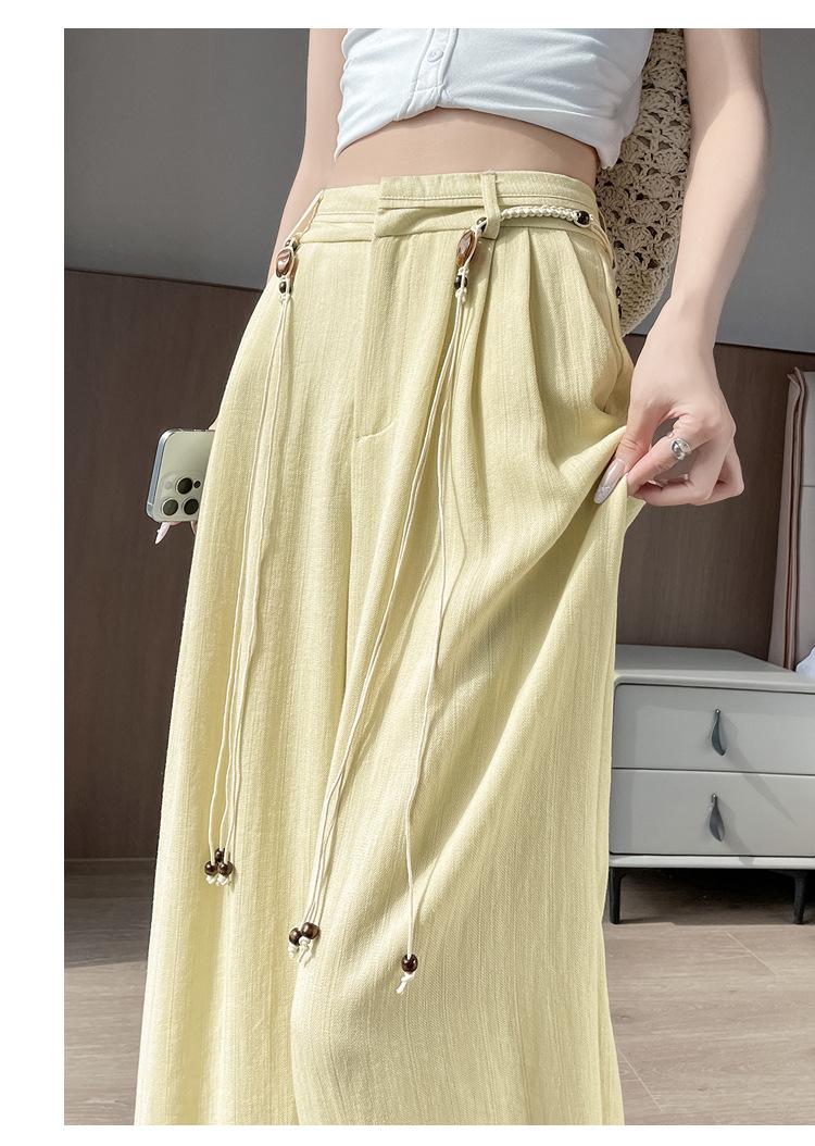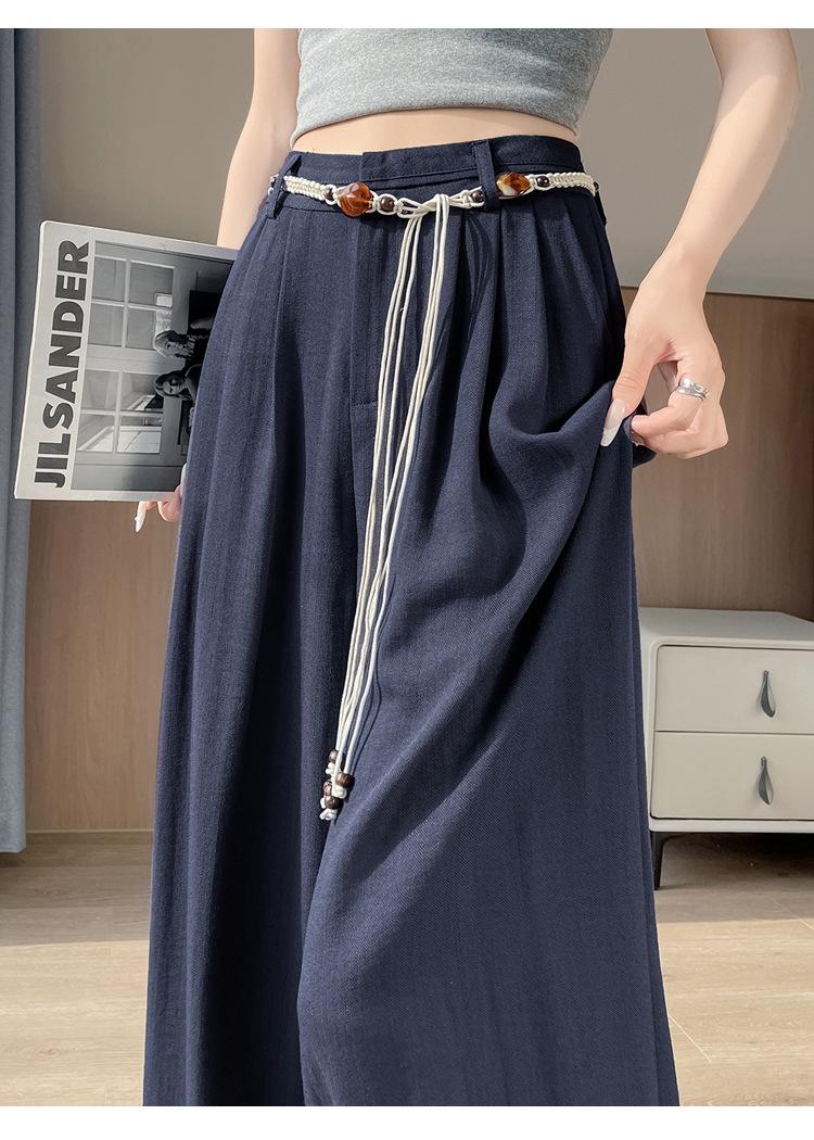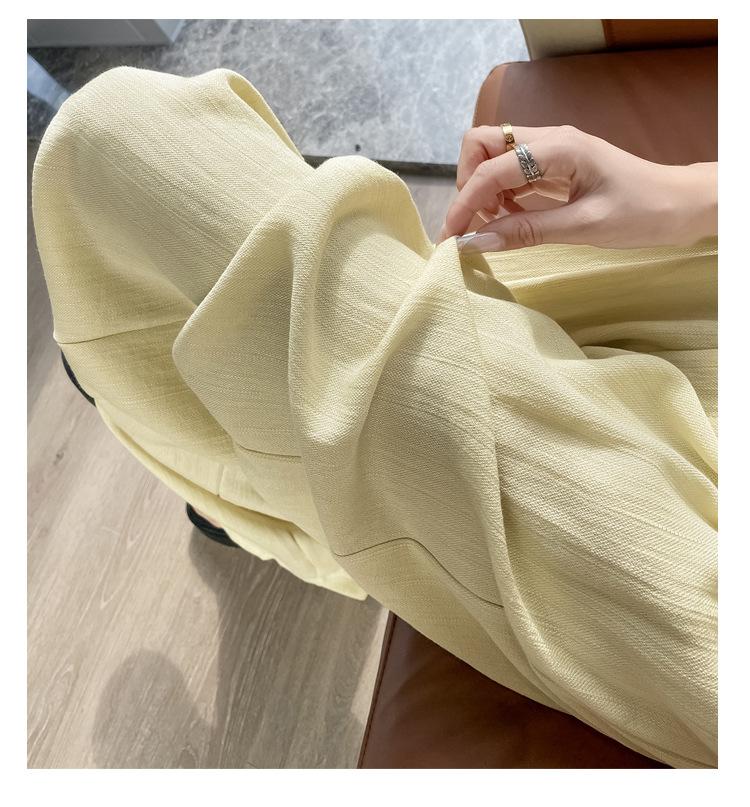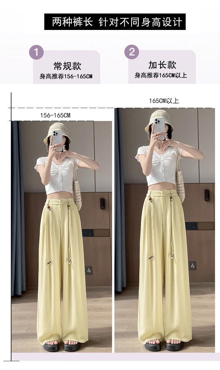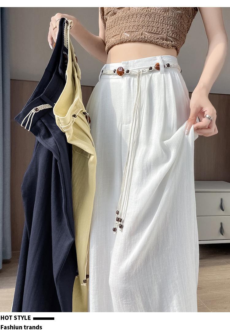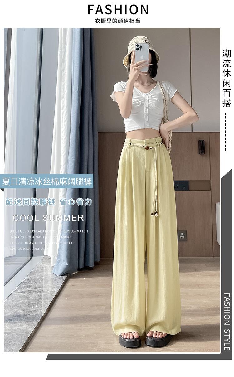 Pantalones de pierna ancha de algodón y lino de seda de hielo de tiro real para mujer, verano delgado 2025 nuevo drapeado de cintura alta, pantalones casuales sueltos