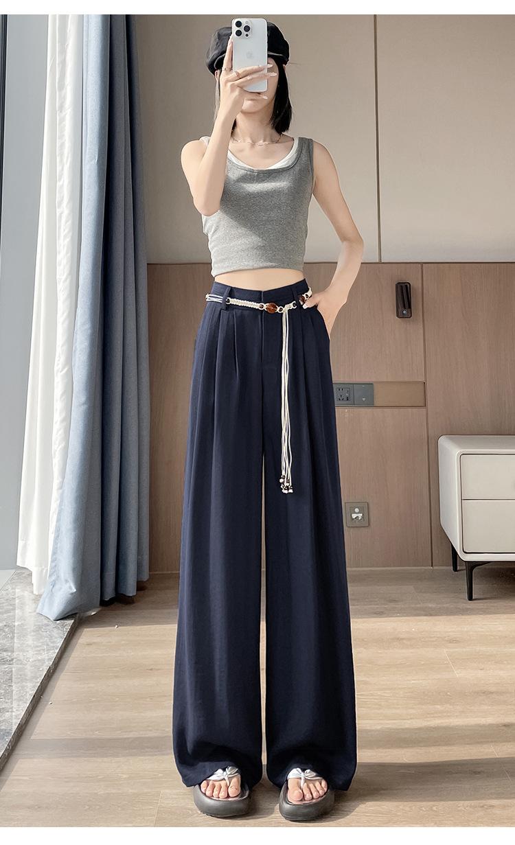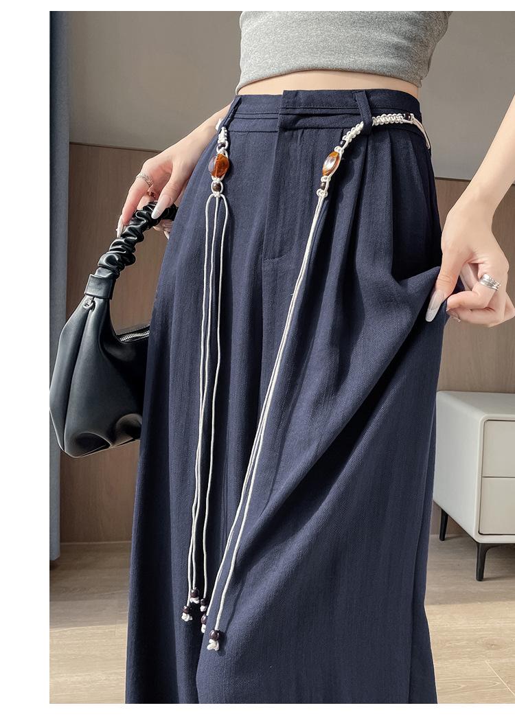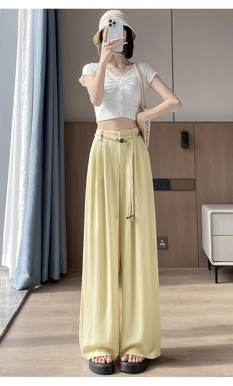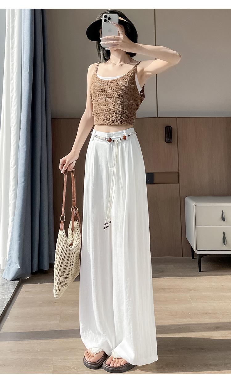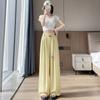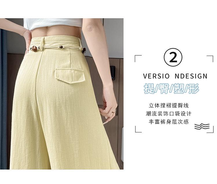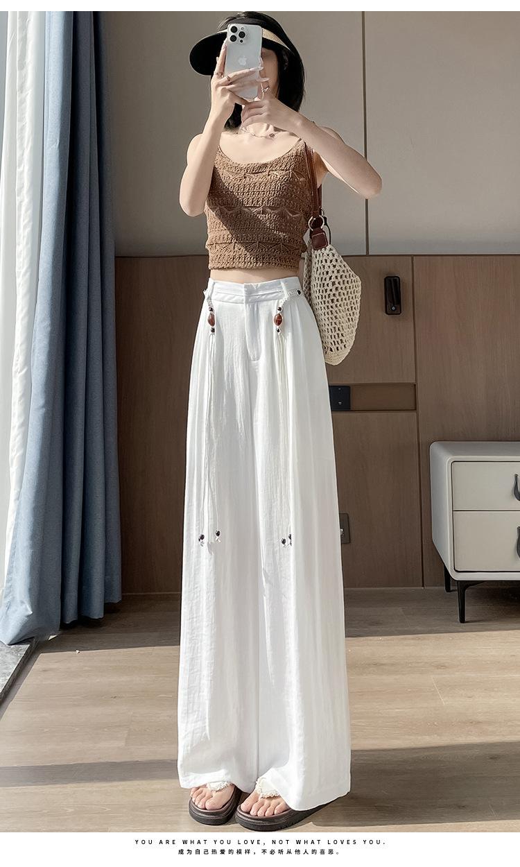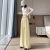 Pantalones de pierna ancha de algodón y lino de seda de hielo de tiro real para mujer, verano delgado 2025 nuevo drapeado de cintura alta, pantalones casuales sueltos