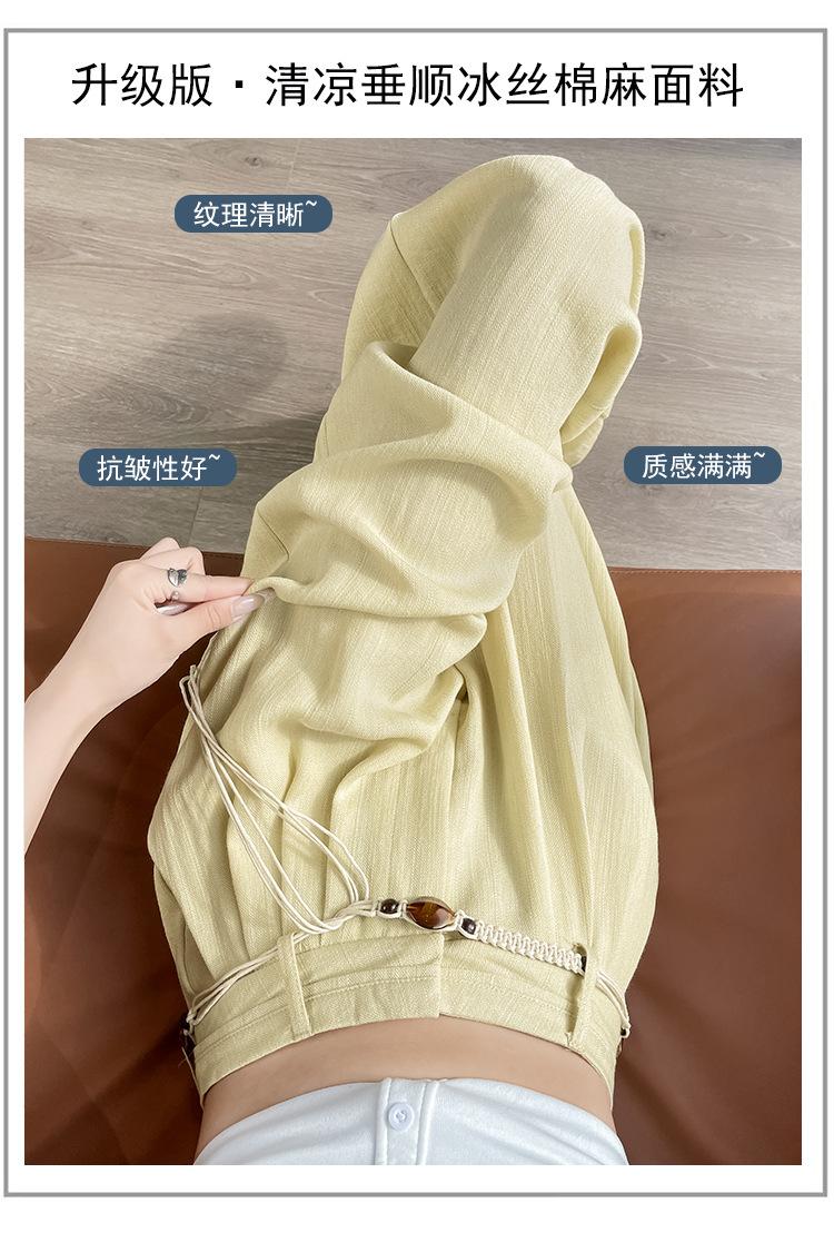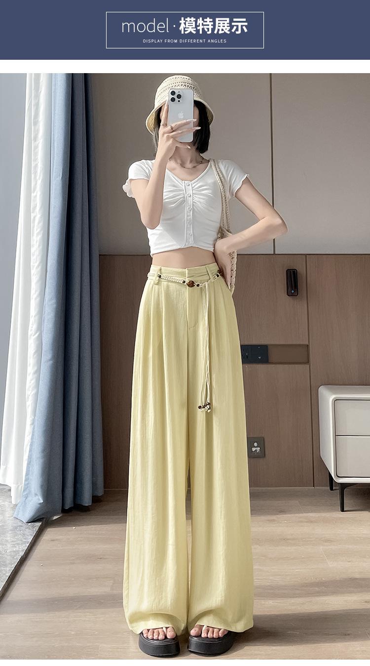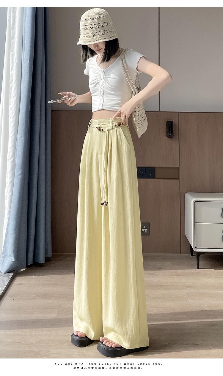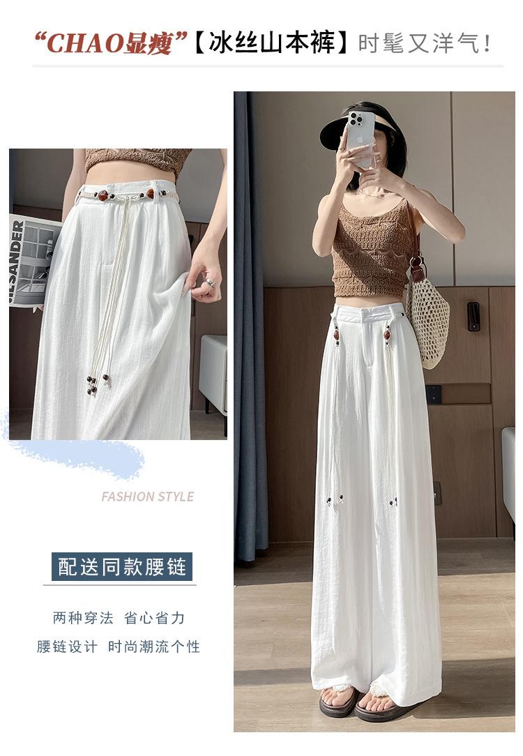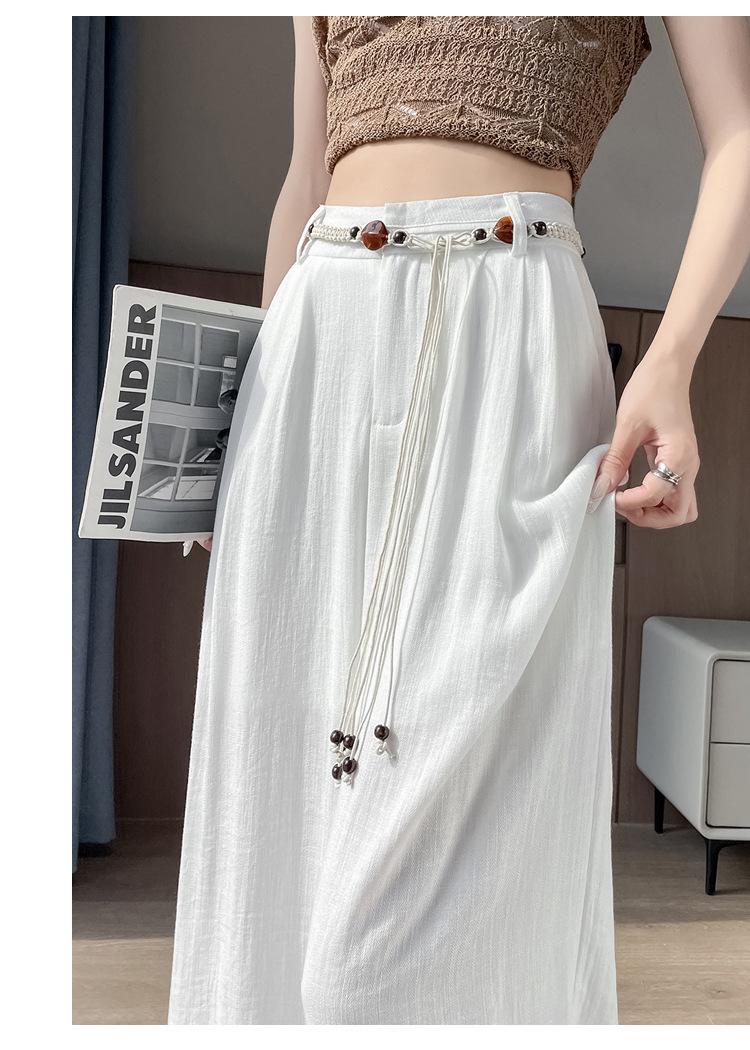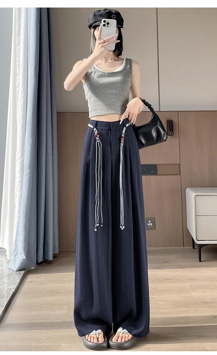 Pantalones de pierna ancha de algodón y lino de seda de hielo de tiro real para mujer, verano delgado 2025 nuevo drapeado de cintura alta, pantalones casuales sueltos