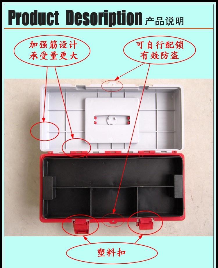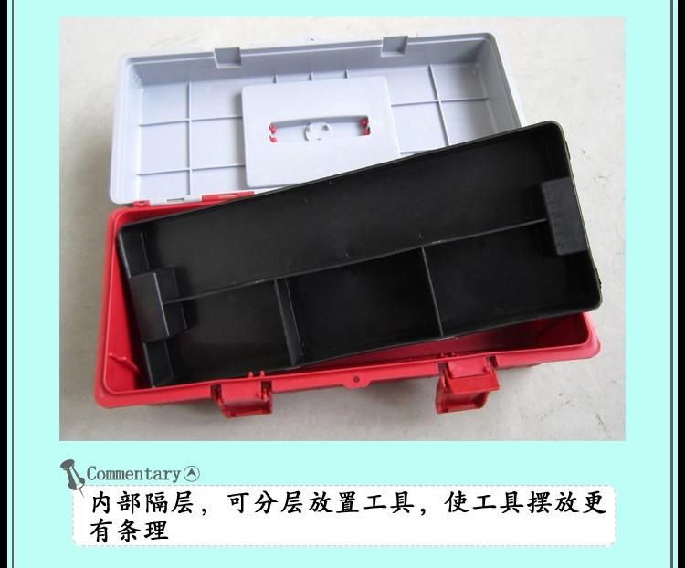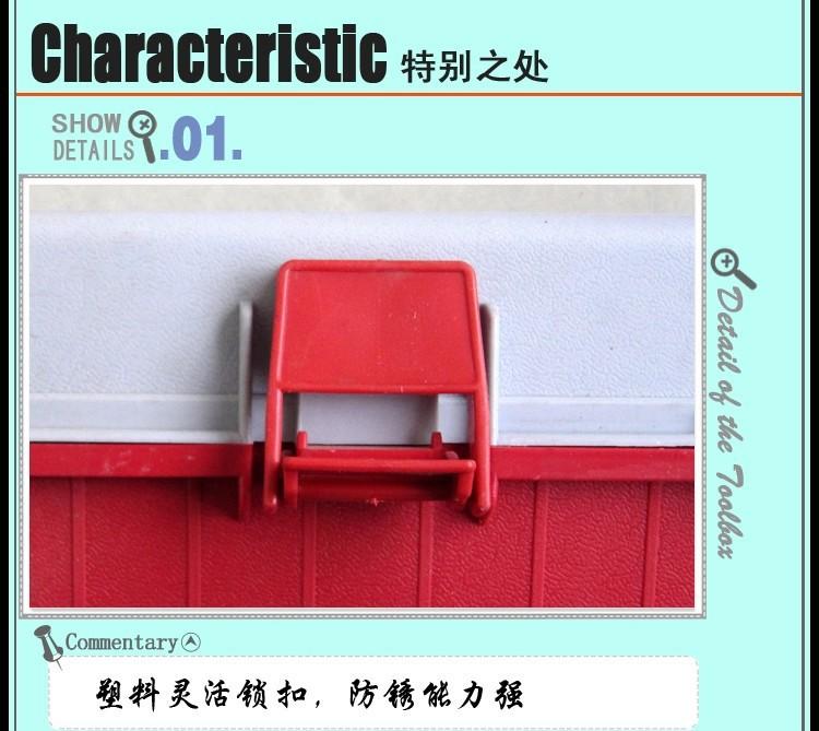 Material: Hecho de plástico de ingeniería ABS importado. El material es resistente.El revestimiento anti-caída y esmerilado en la superficie realza la apariencia de la caja de herramientas y aumenta la resistencia al desgaste, haciéndola adecuada para almacenar más y herramientas más grandes.