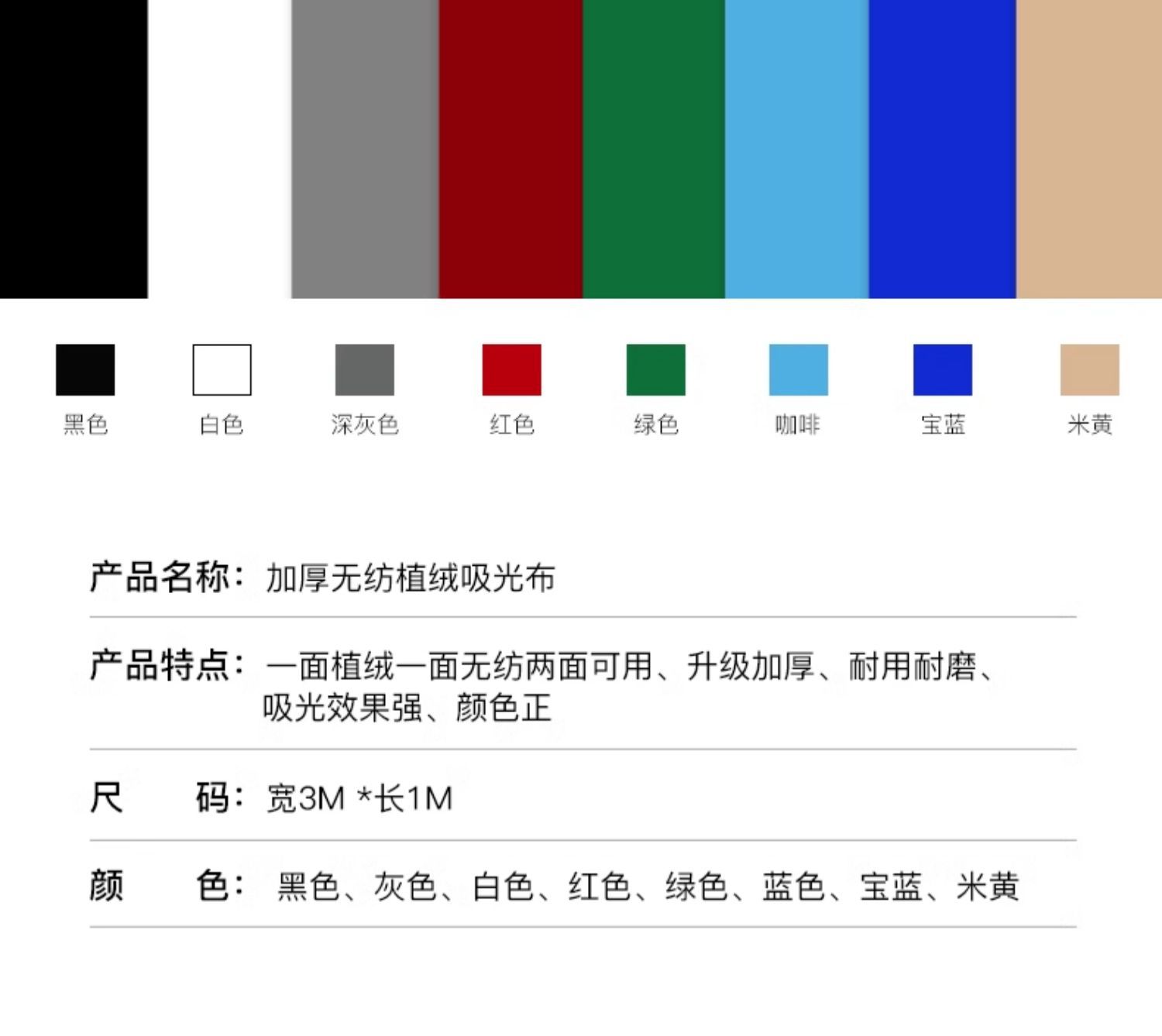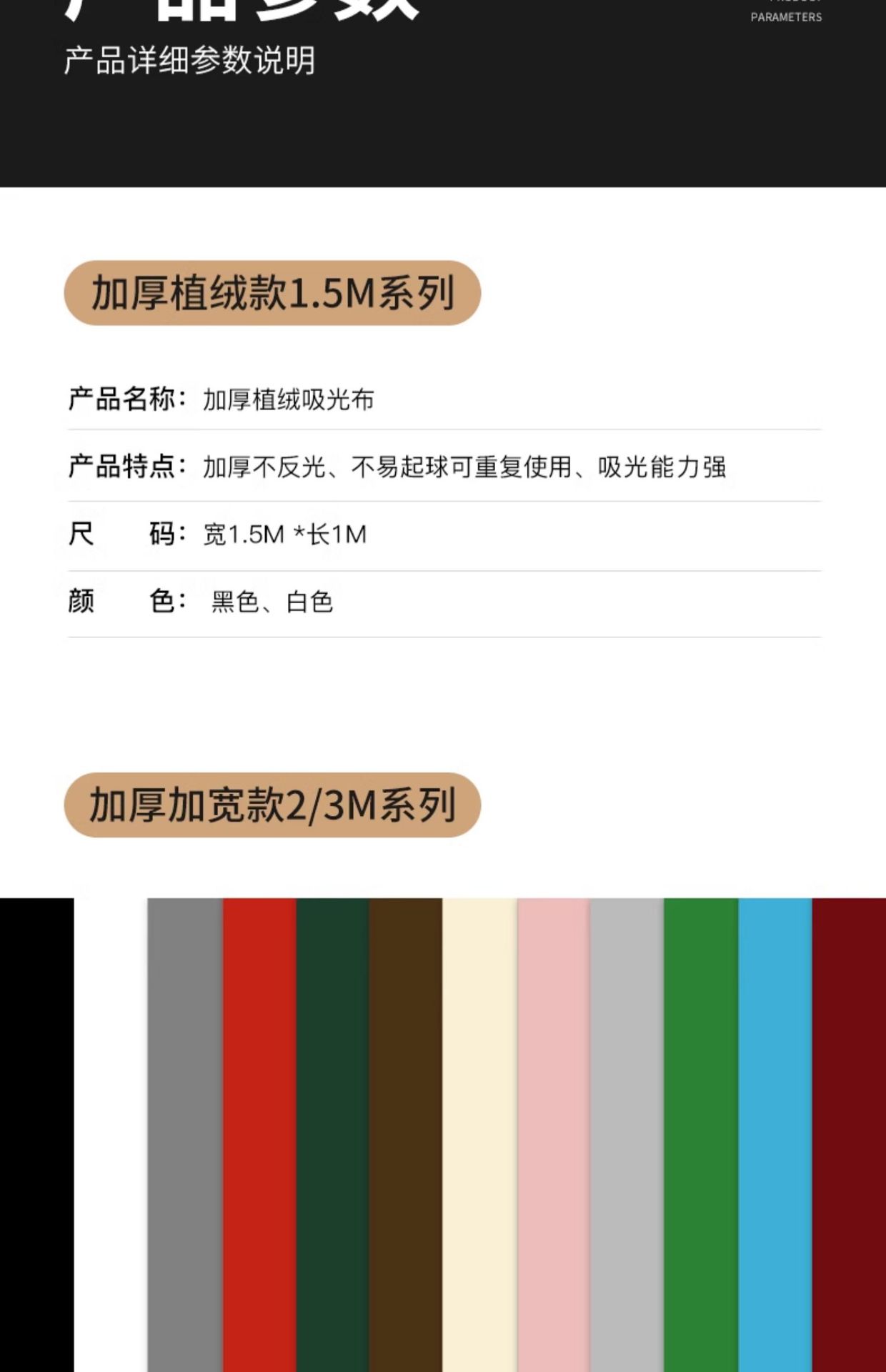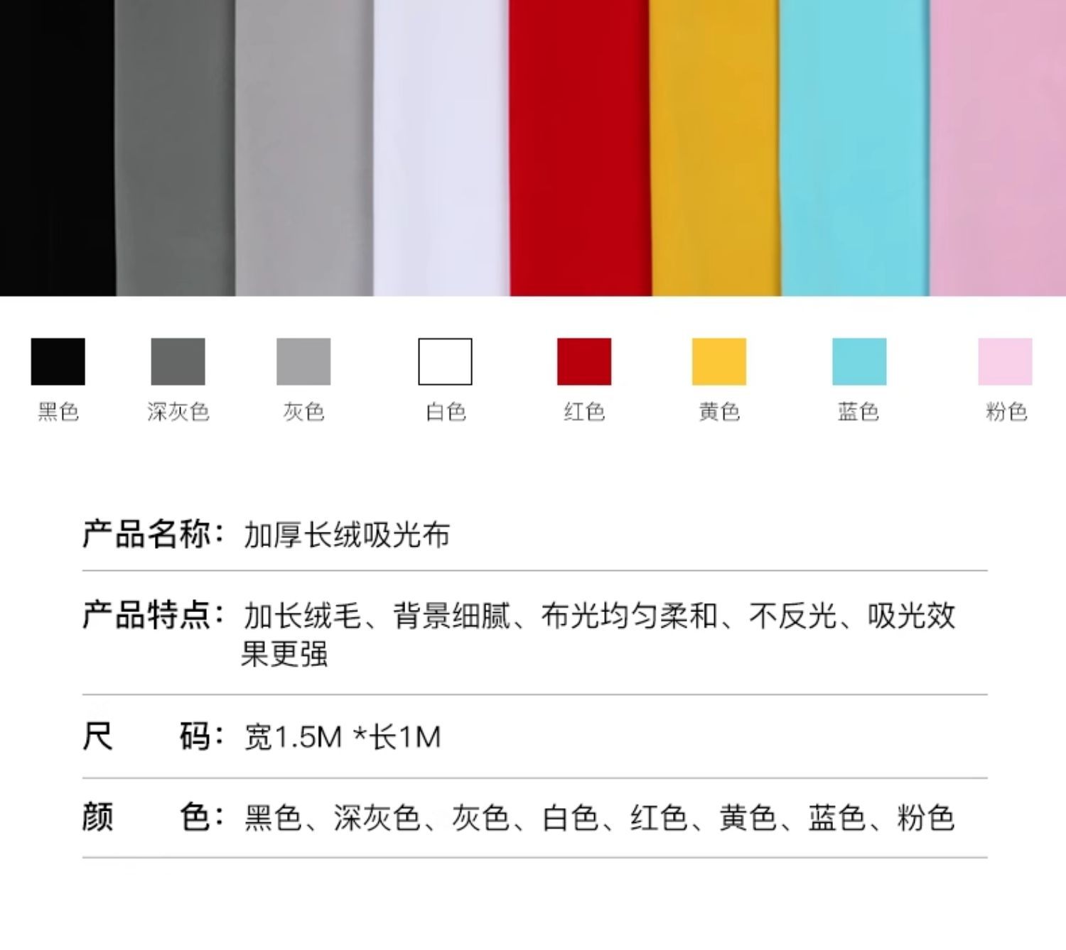 Tela flocado negro absorbente de luz marco de fondo fotográfico pantalla negra tela de fondo de color sólido accesorios de disparo cortina no reversible