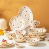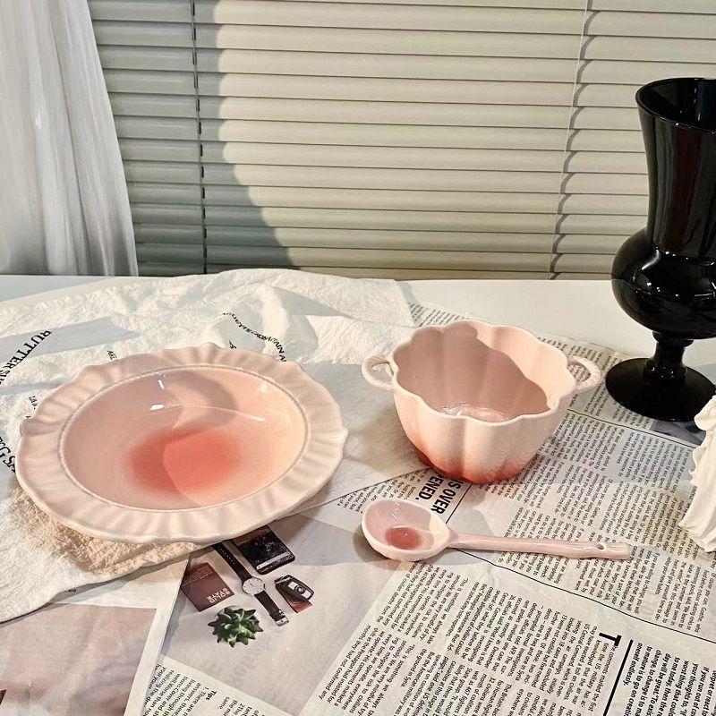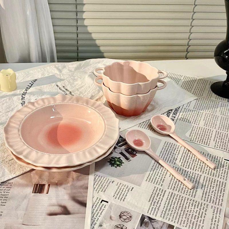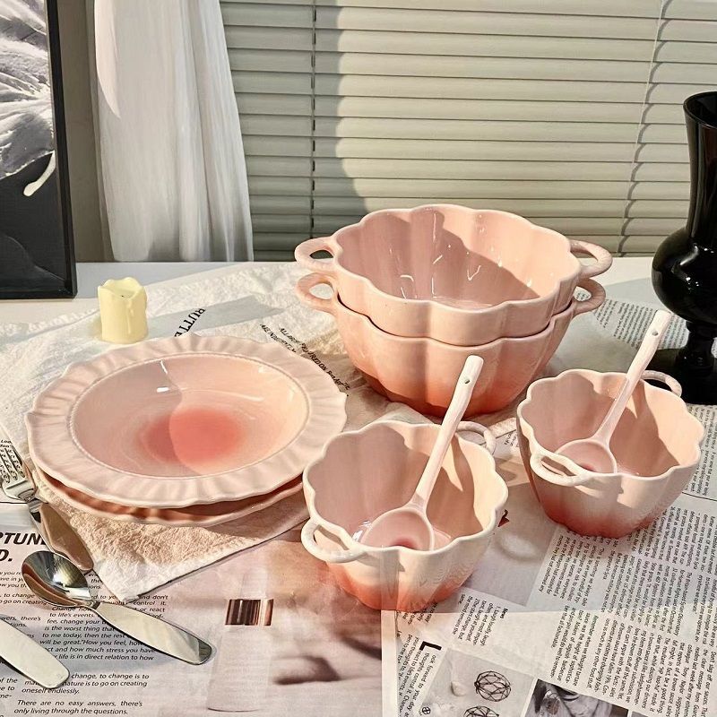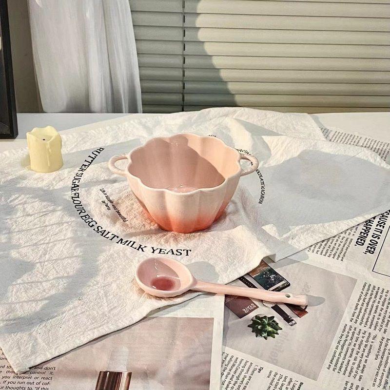 Tazón de sopa de cerámica de alto valor de color, color bajo cubierta, estilo binaural ins, tazón para fideos instantáneos, juego de combinación de vajilla doméstica ins