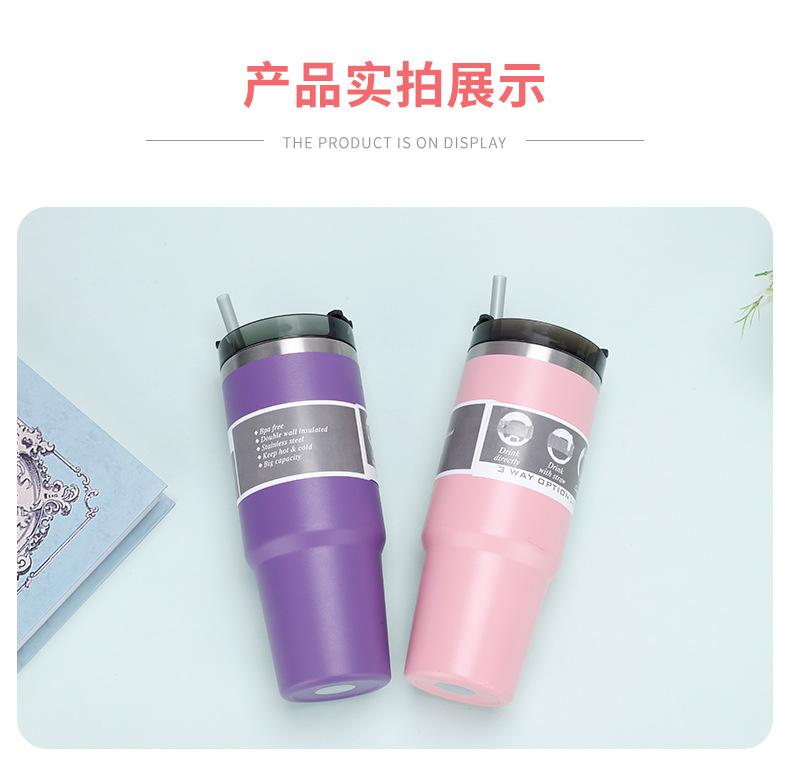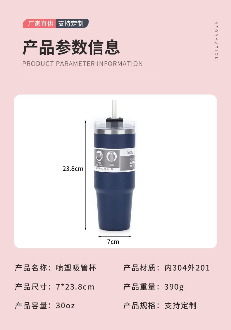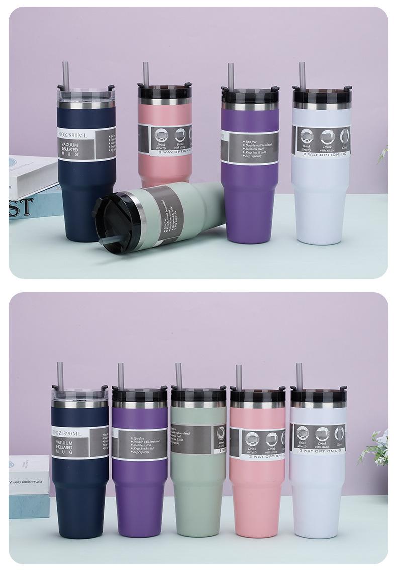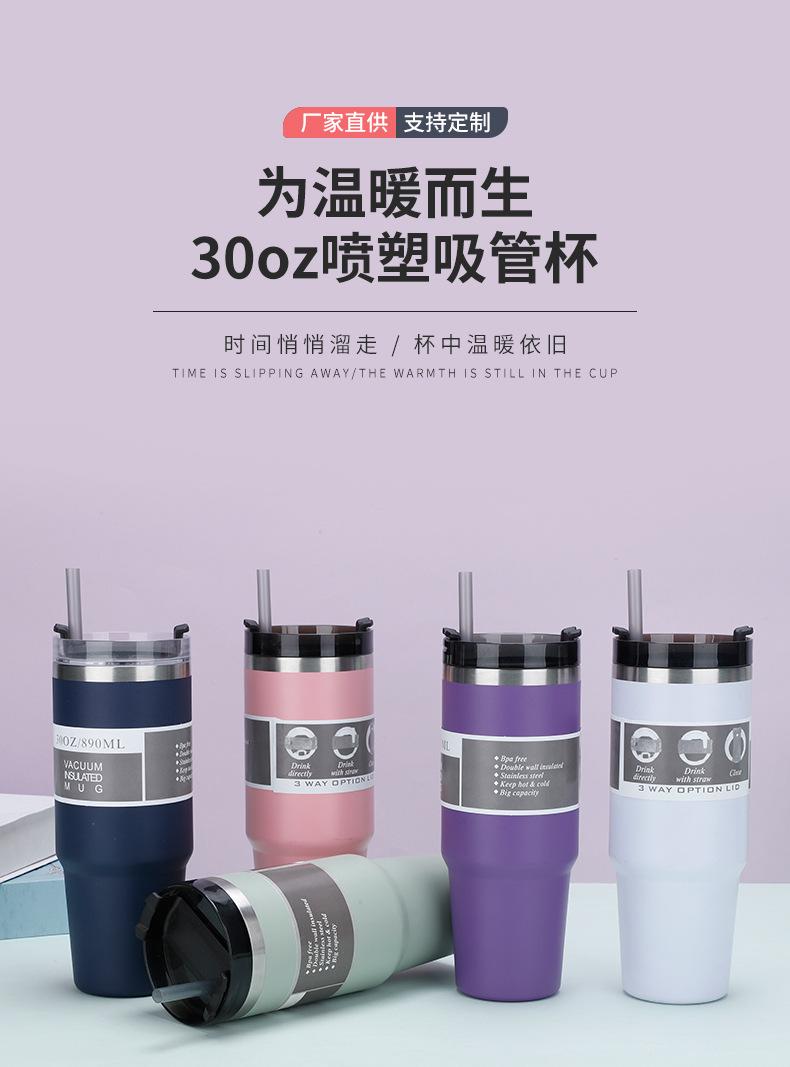 Nueva taza de coche de doble capa de 30 oz, de acero inoxidable 304, con pajita, aislante para hielo, termo para coche, venta al por mayor
