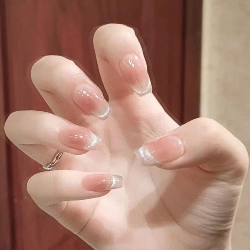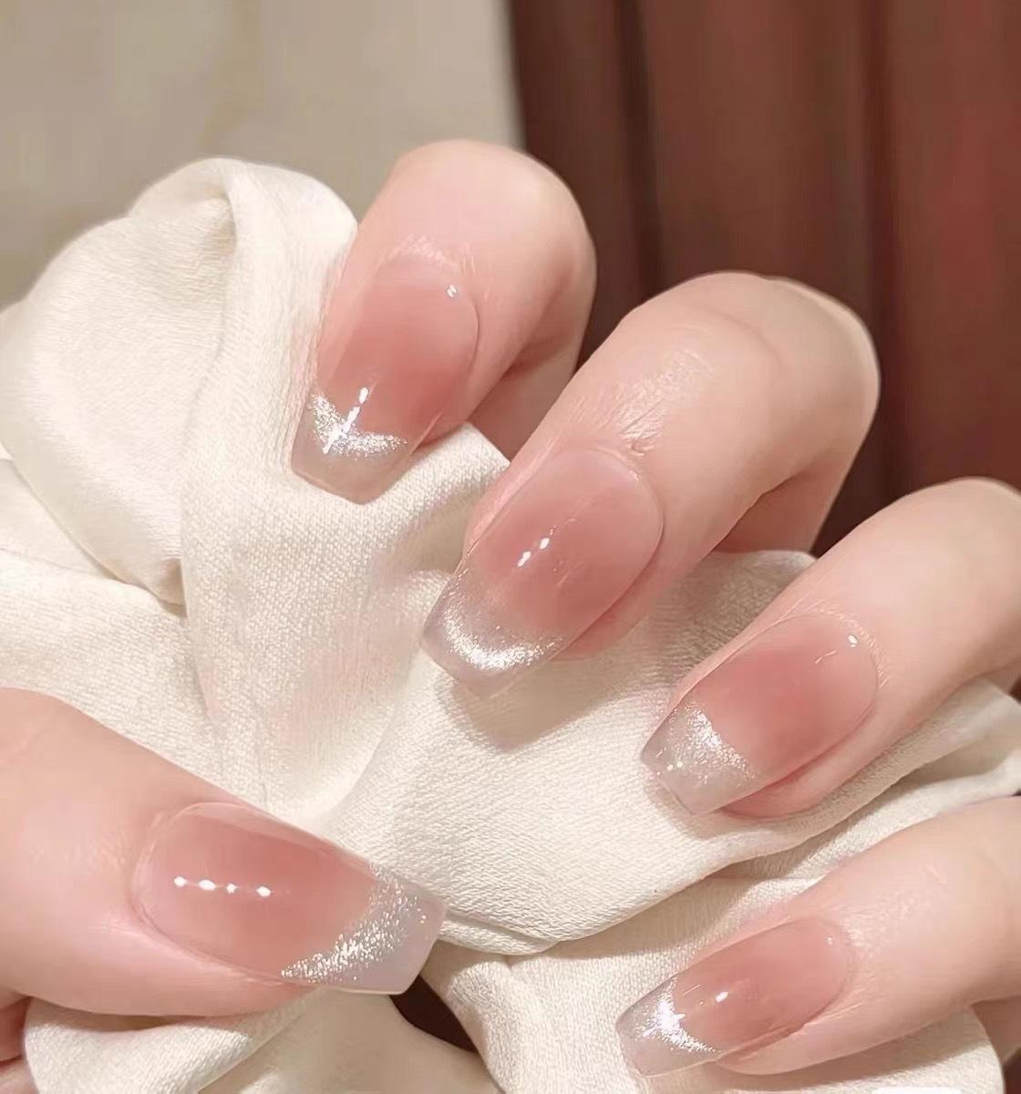 Cat eye, Sweet, Ultra-thin and traceless, Ice through, Medium, Transparent nails, Wearable