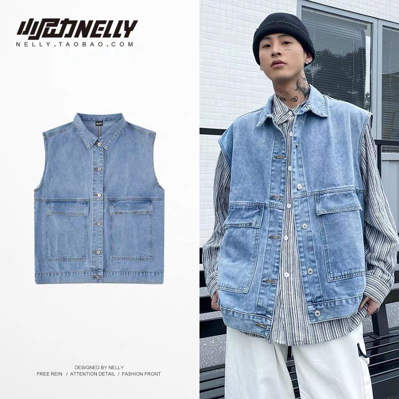 Chaqueta vaquera de primavera y otoño para hombre, estilo coreano, holgada, sin mangas, de moda, para el trabajo.