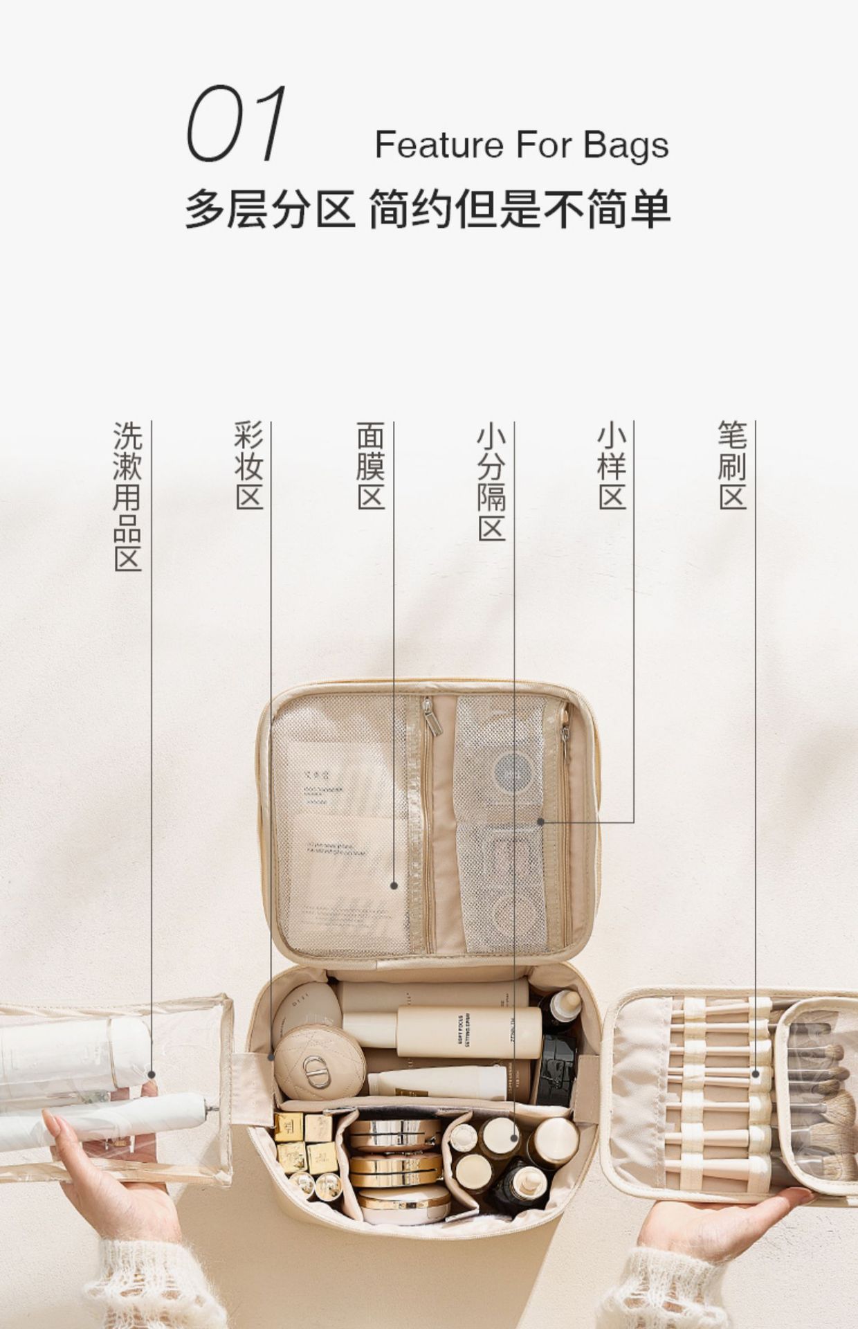 Cream Bare Apricot [Large Capacity Six Big Partitions Precisely Storage Dry and Wet Separation Waterproof Bag]]